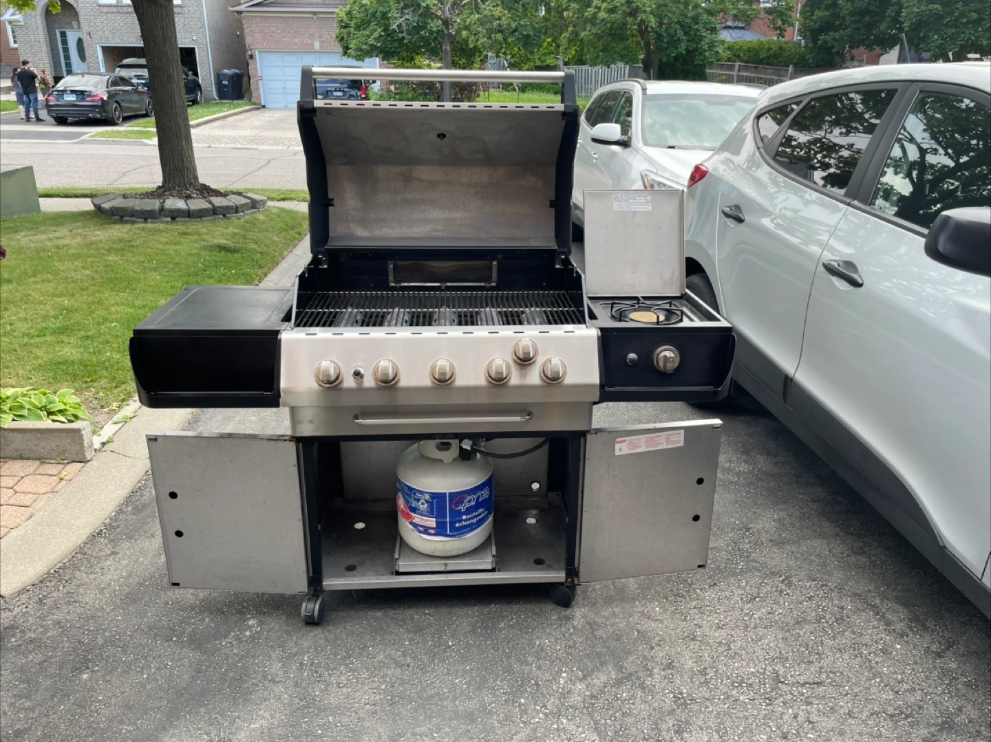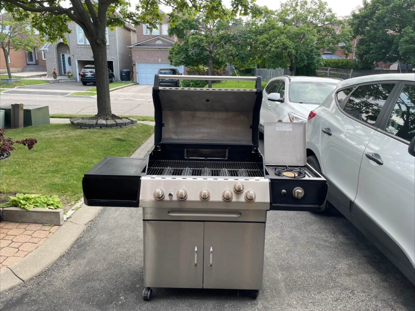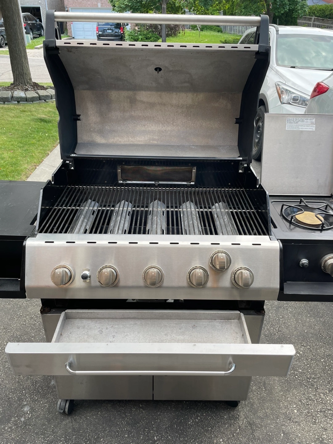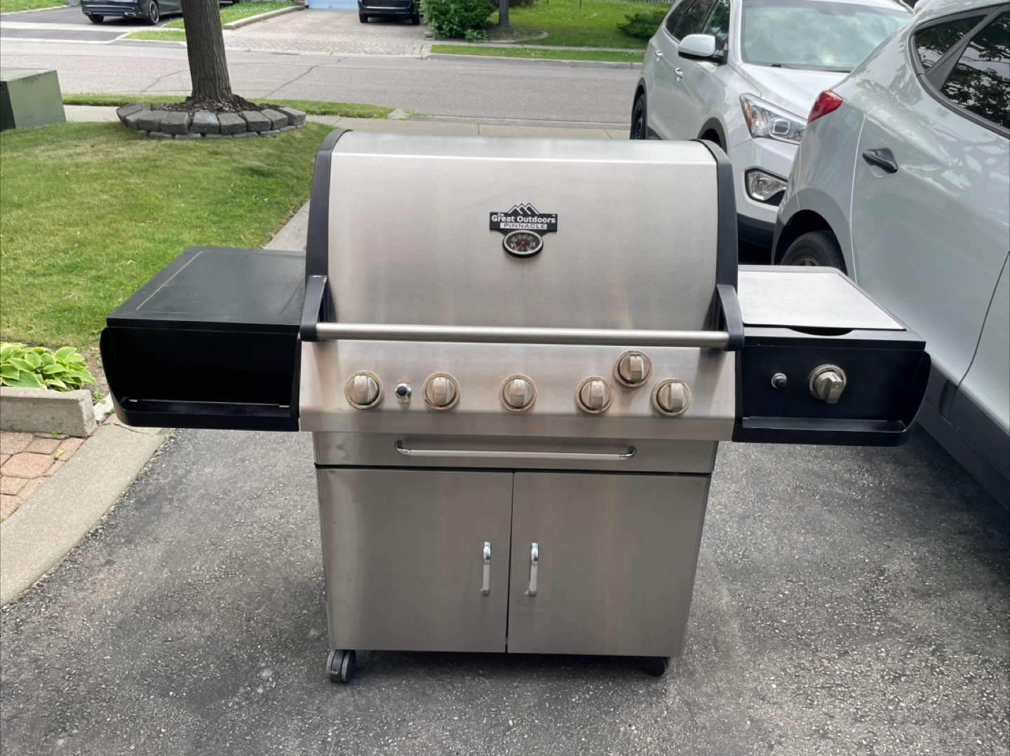 Selling a Great Outdoors BBQ grill. It has a side burner and a space for the propane tank. It's a great grill for summer barbecues!