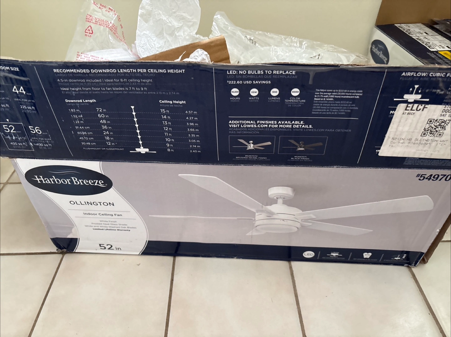 Selling a brand new Harbor Breeze Ollington indoor ceiling fan! It's still in its original box, never been opened or used. Perfect for adding a touch of style and comfort to any room. Get it now and enjoy a cool breeze!