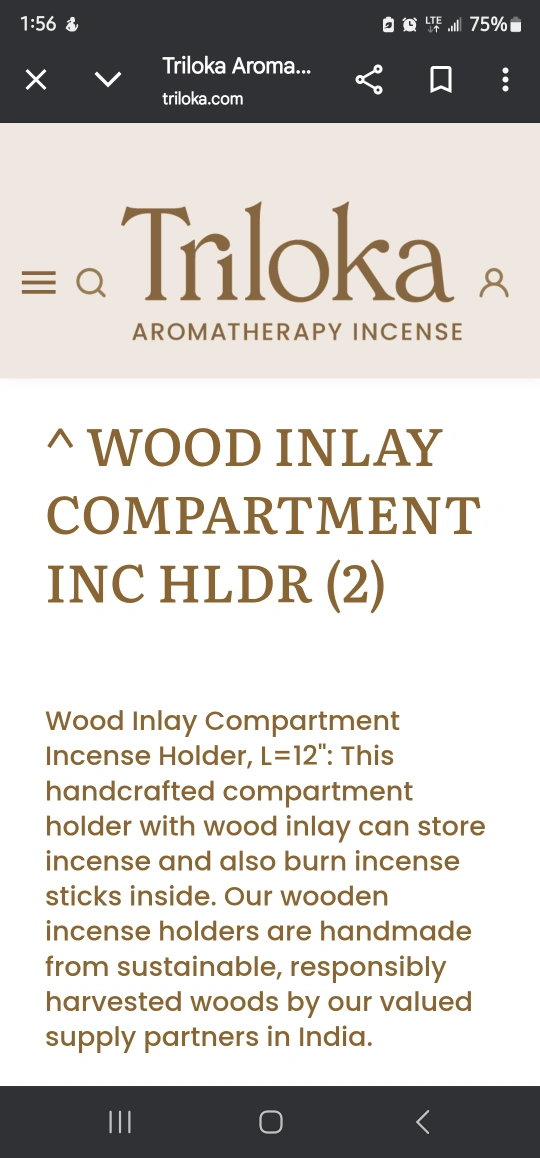 Triloka Aromatherapy Incense Wood Inlay Compartment