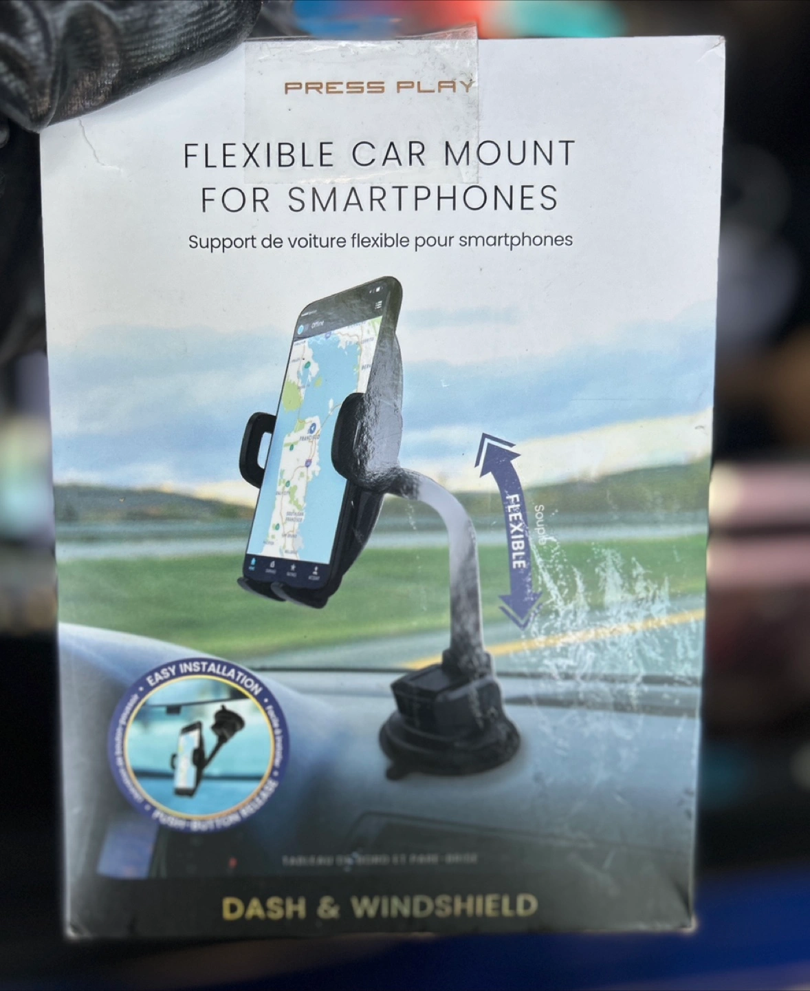 245Selling a Press Play flexible car mount for smartphones. It's designed for easy installation on your dash or windshield. It supports smartphones and offers a flexible viewing angle