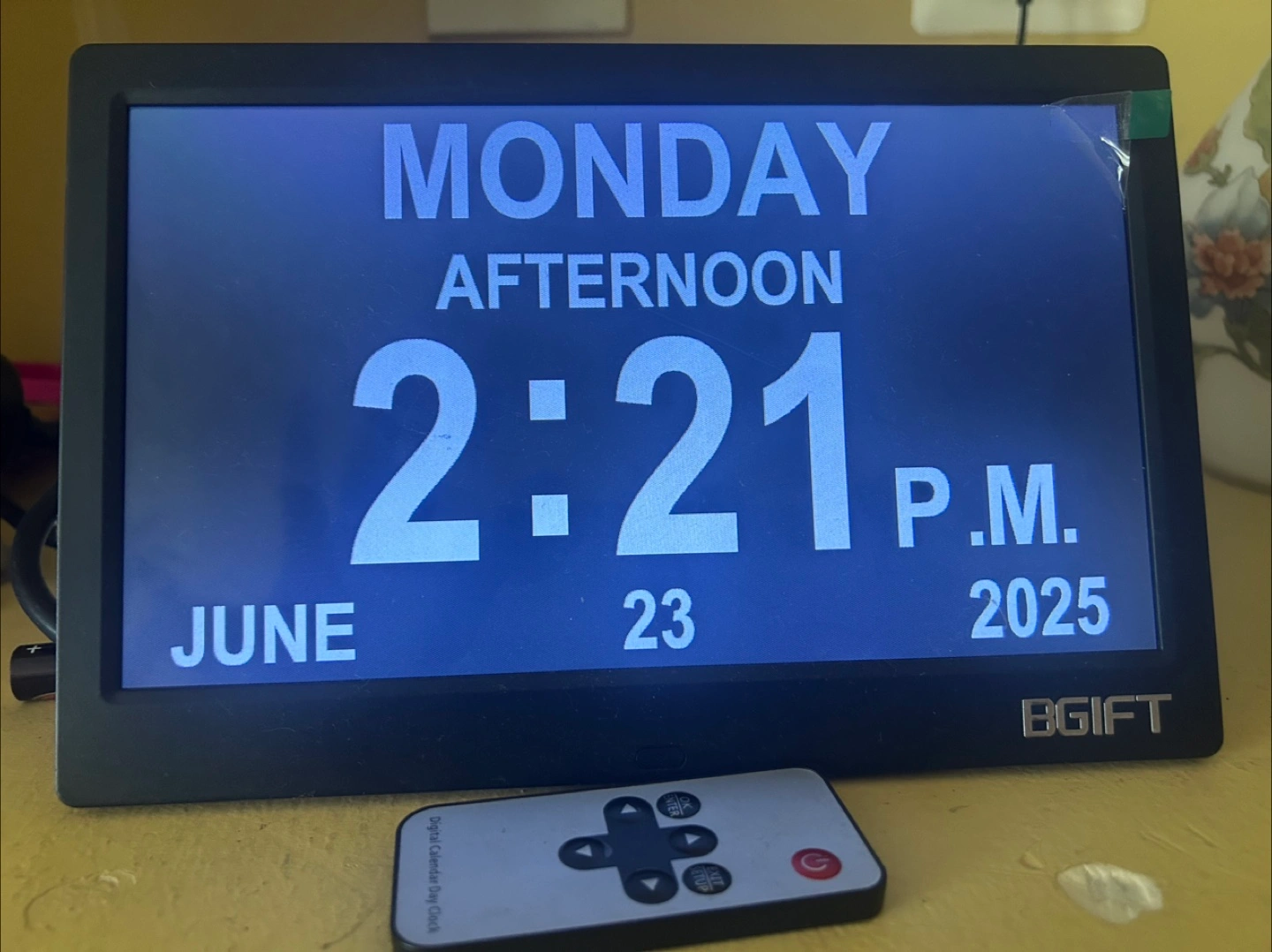 Selling a large BGIFT Digital Calendar Day Clock! It displays the day, time, and date, making it super easy to read. The clock also comes with a remote control. It shows the date as June 23, 2025 on the screen.