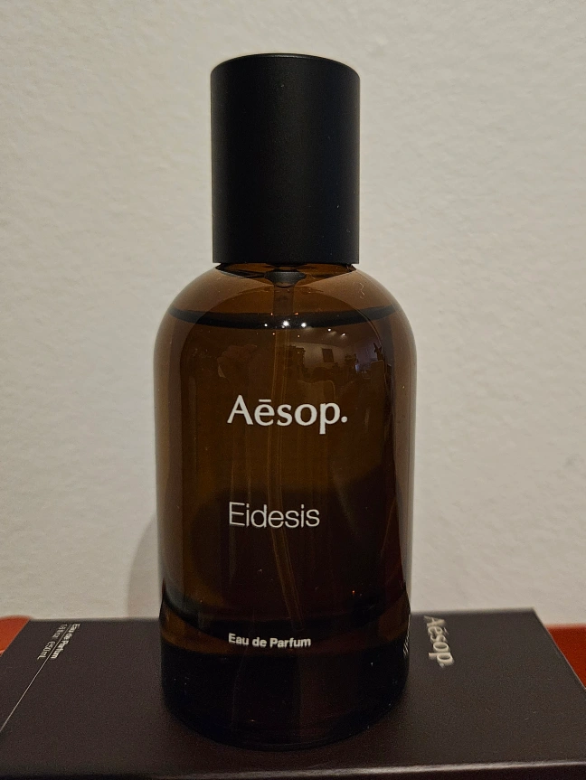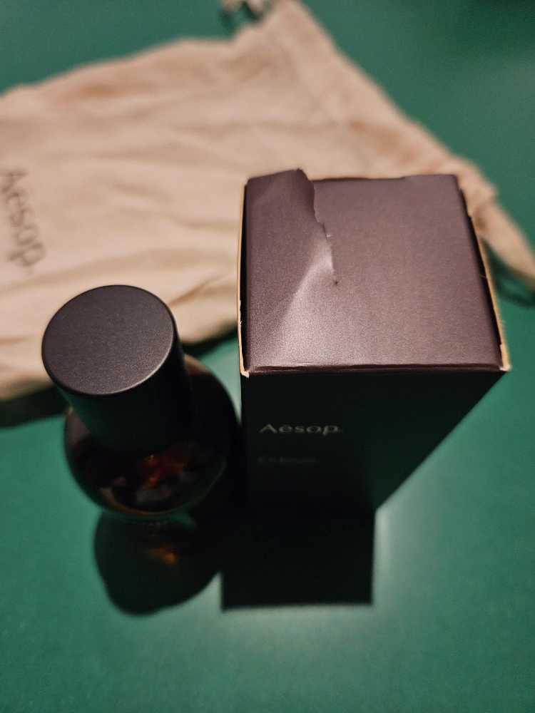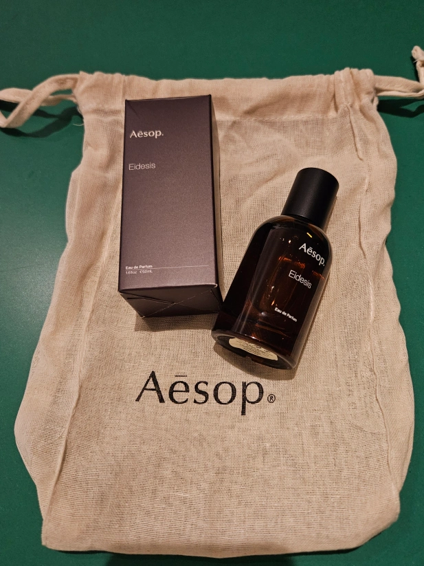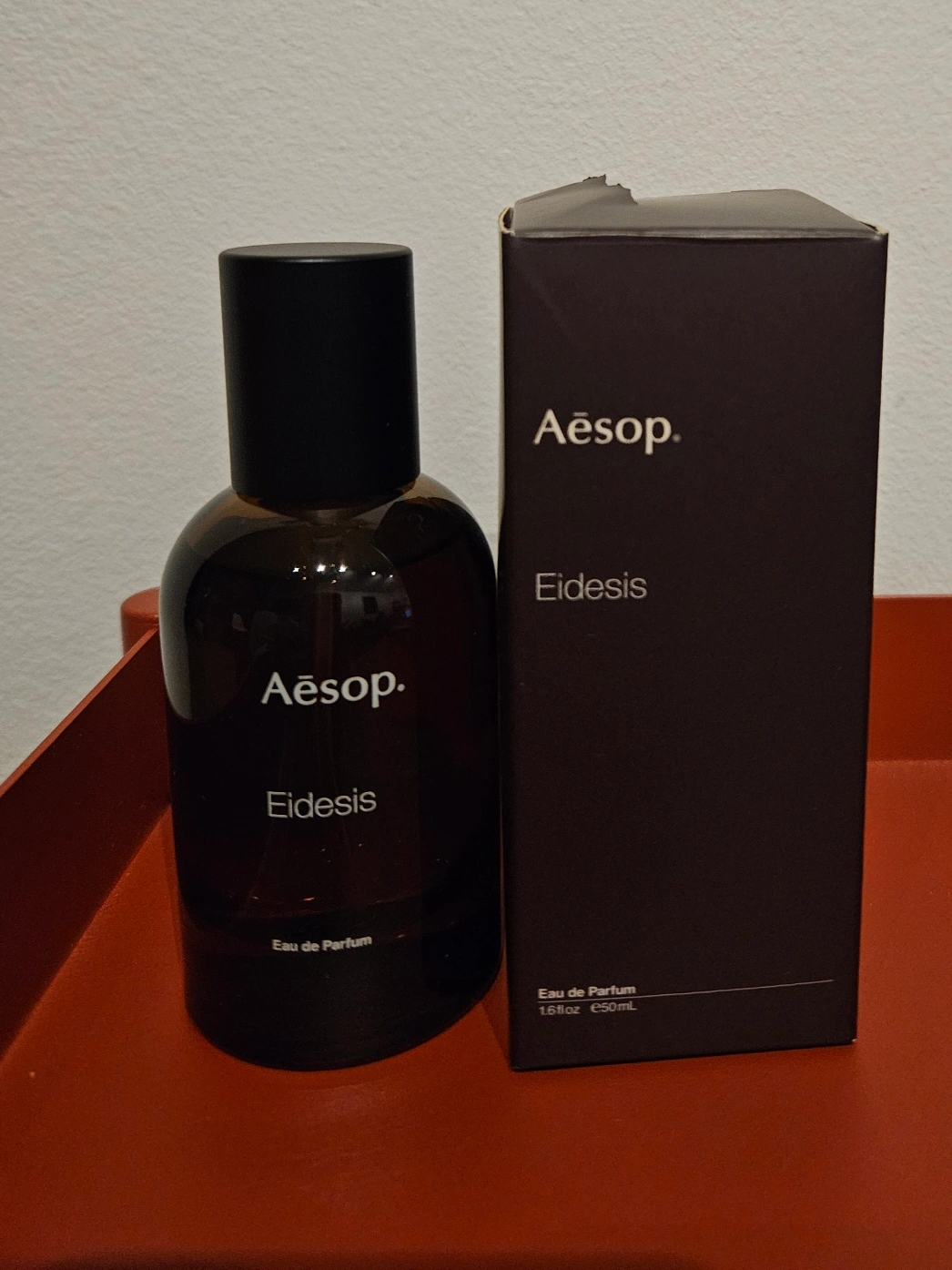 Selling a bottle of Aesop Eidesis Eau de Parfum. It comes in a 50mL bottle and includes the original box and bag. The top part of box is a bit damaged.