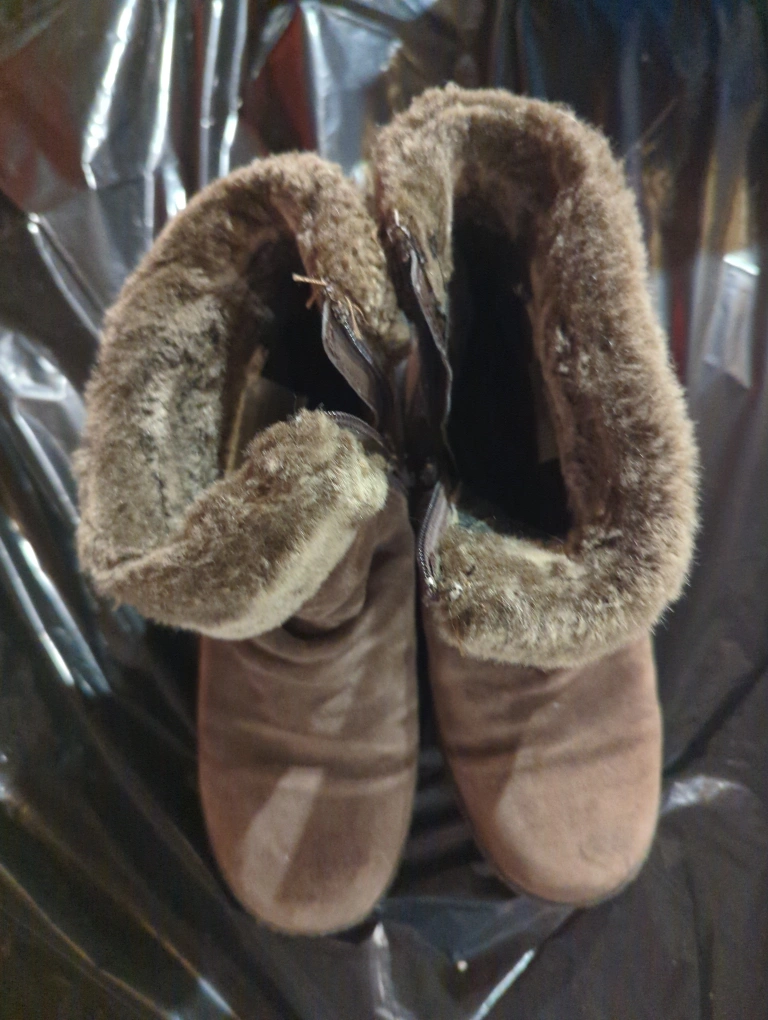 These cozy brown boots are perfect for winter! They have a soft fur trim and a convenient zipper closure. They're in great condition and ready to keep your feet warm and stylish this season