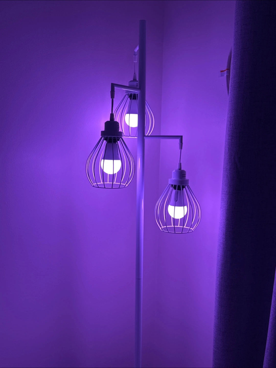 Selling a modern floor lamp with a unique cage-style design! It features three lights, adding a stylish touch to any room. Perfect for creating a cozy and inviting atmosphere in your home.