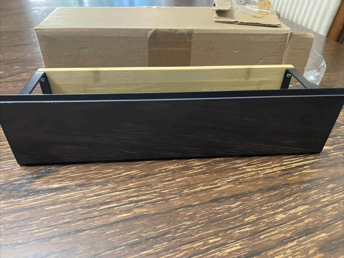 BRAND NEW Black Metal & Bamboo Magnetic Shelf with Box