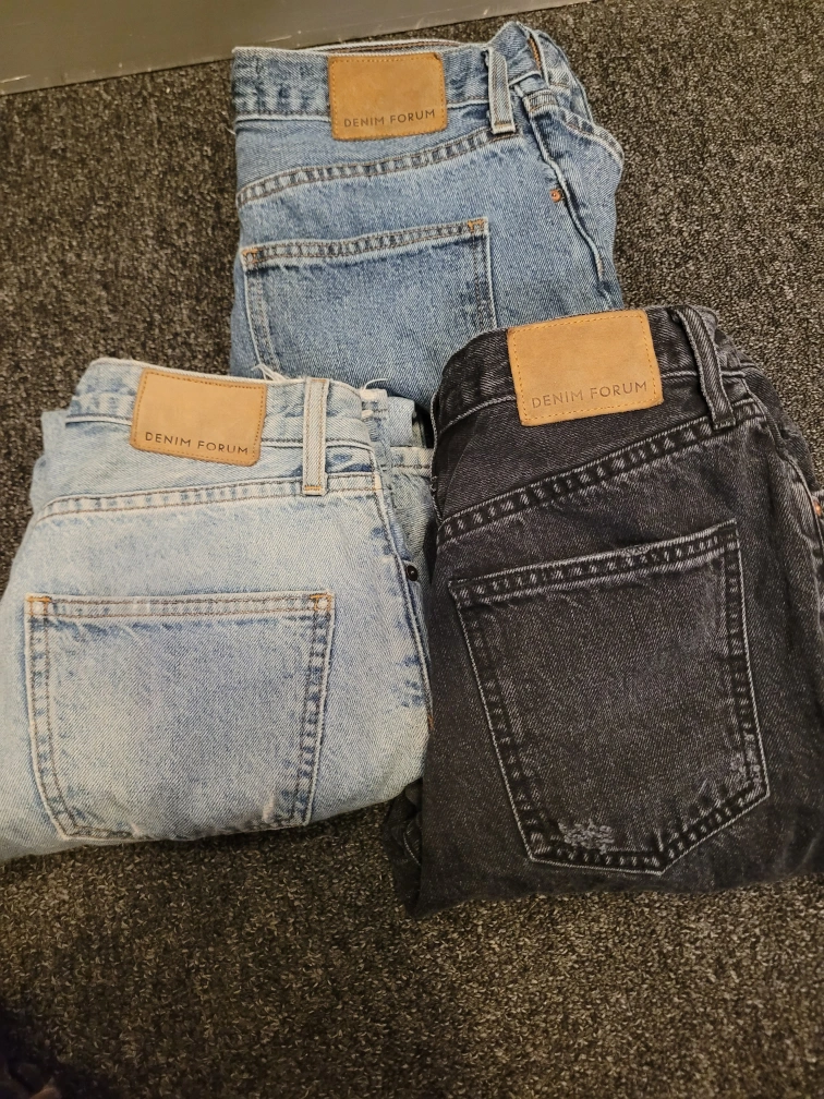 Selling a few pairs of Denim Forum jeans! One pair is black and says 'The Joni High Rise Loose 29L' and the other two are light blue. All are size 25, 26 or 24. They're in good condition and ready for a new home!