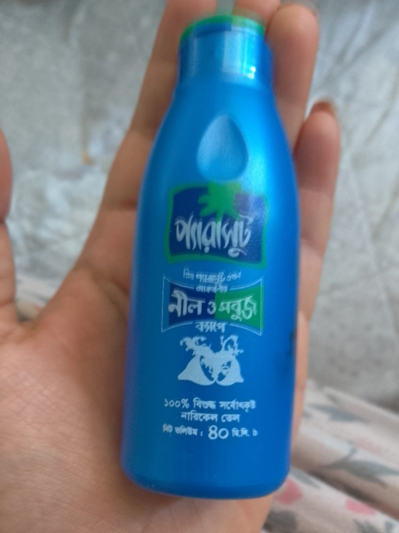 A bottle of Parachute coconut oil. The bottle contains 80ml of 100% pure coconut oil. Not used.