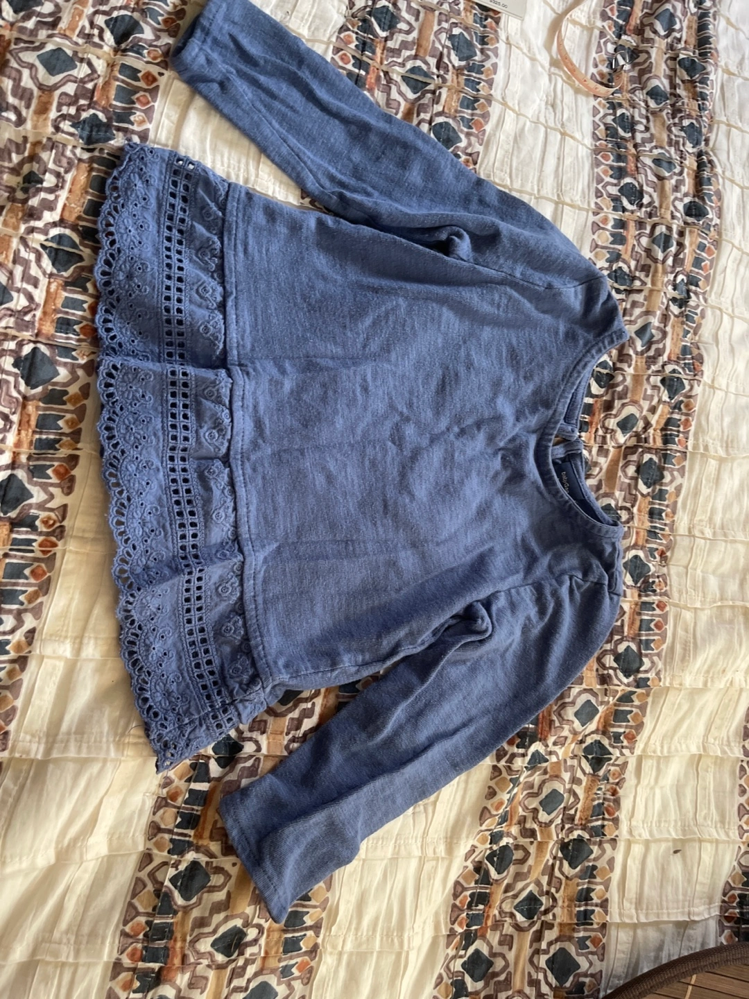 Selling a cute Baby Gap long sleeve top in size 3T! It's in great condition and perfect for your little one. The top features a lovely lace trim detail. It is a soft blue color and made from comfortable materials.
