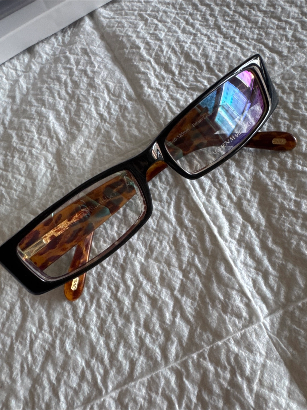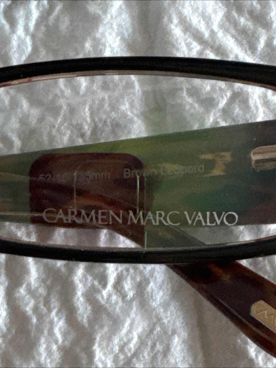 Selling a pair of Carmen Marc Valvo eyeglasses frame in a stylish brown leopard print - great for the prescription glasses. The size is 52-16-135mm. They are in great condition.