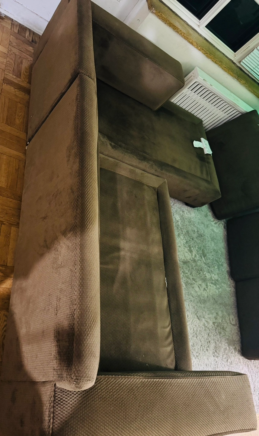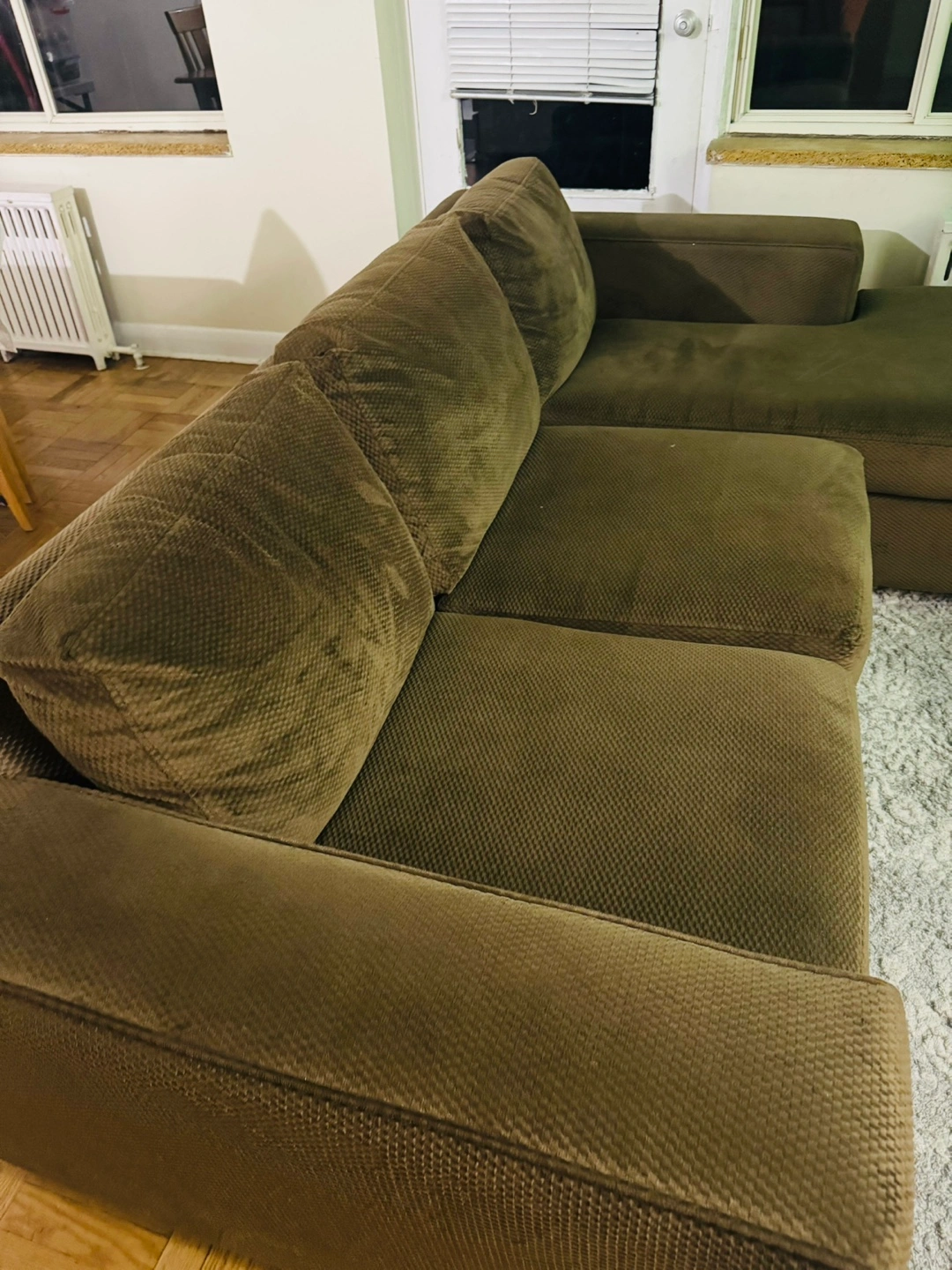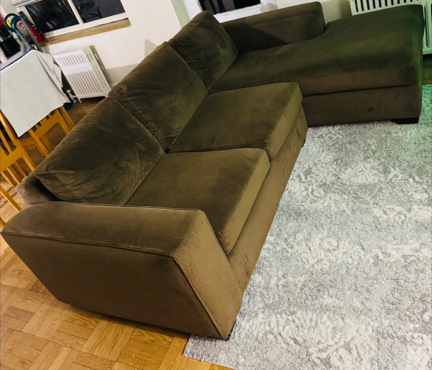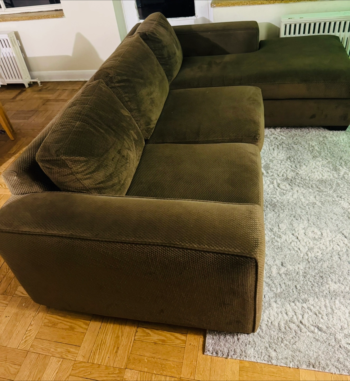 Selling a comfortable brown sectional sofa from Urban Barn. It's in good condition and ready for a new home. Perfect for lounging and relaxing in your living room!