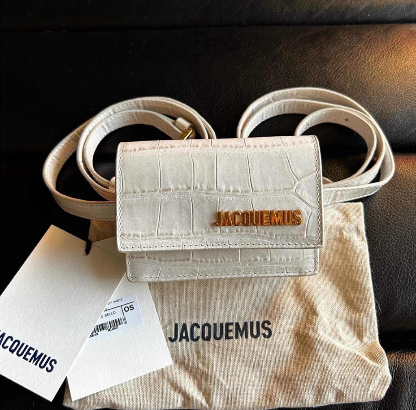 Selling a stylish Jacquemus Le Bello belt bag in white. It's in great condition and ready for a new home! The bag features a unique design and is perfect for adding a touch of elegance to any outfit. The belt is adjustable, making it a versatile accessory