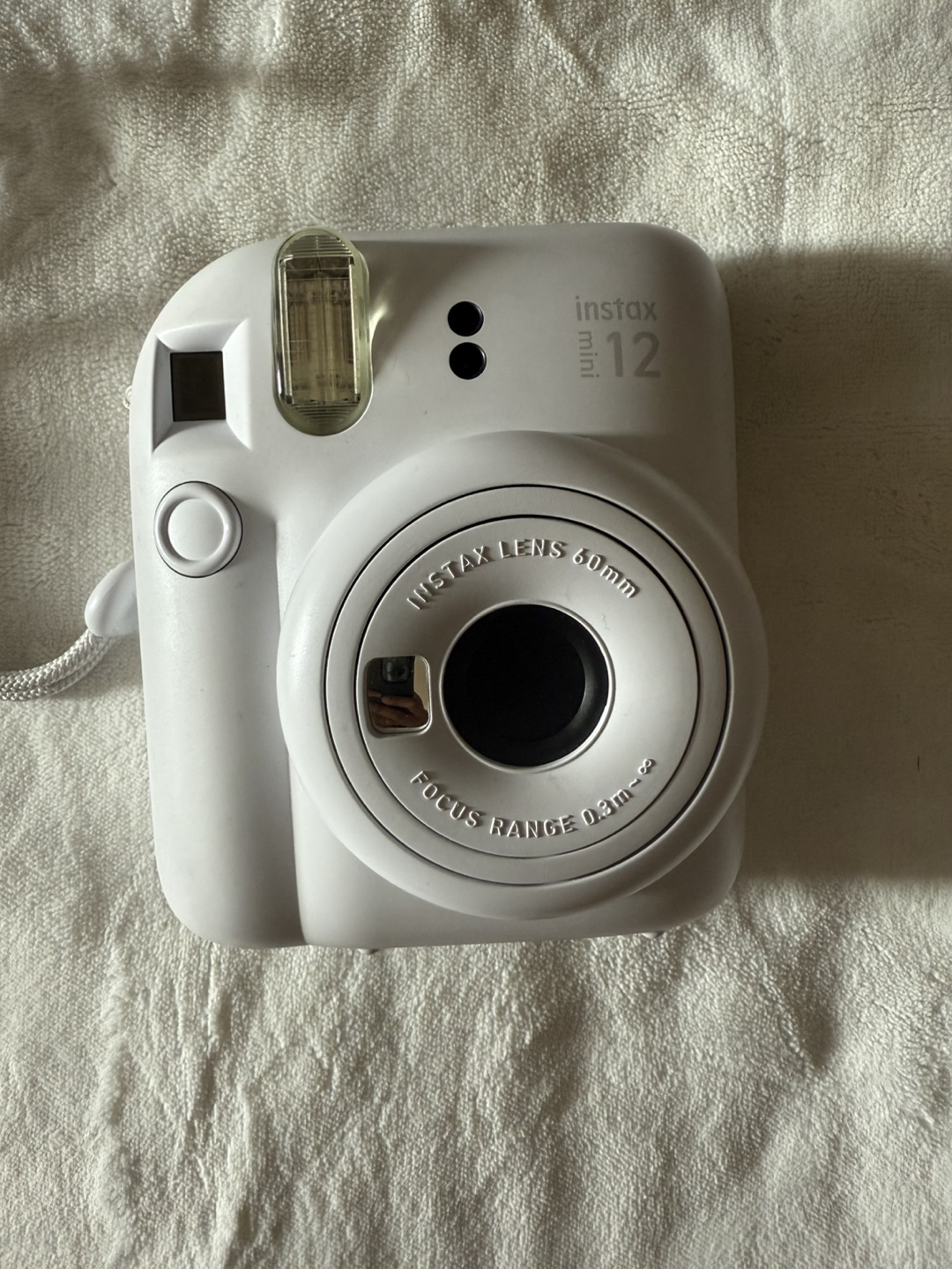 Selling a Fujifilm Instax Mini 12 instant camera in white! It's in great condition and ready to capture some fun memories. The Instax lens is 60mm with a focus range of 0.3m to infinity. This camera is lightweight and portable, perfect for on-the-go snapshots.