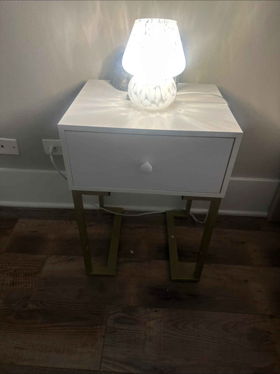 Selling 2 cute white nightstand! It has a drawer for storage and gold legs. Perfect for any bedroom and in really great condition! Selling each for $20 each or both for $35