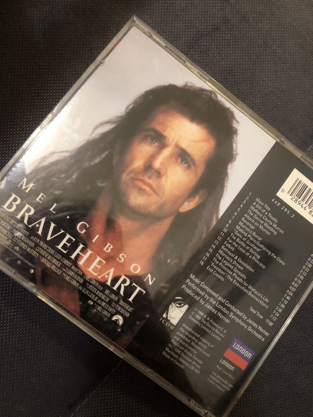 Selling the original motion picture soundtrack CD for Braveheart, composed by James Horner and performed by the London Symphony Orchestra. A classic soundtrack for a classic movie!