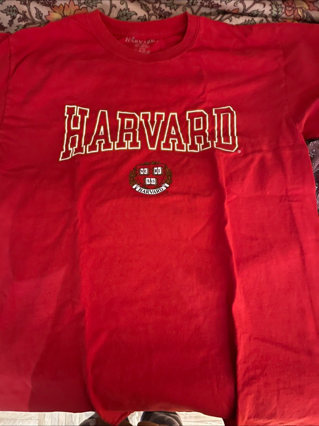 Selling a red Harvard t-shirt. It features the Harvard logo and lettering. Perfect for any Harvard fan!