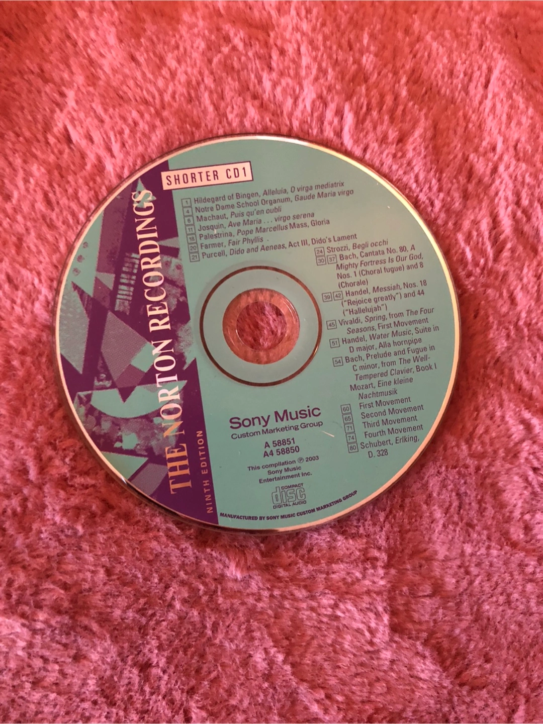 Selling The Norton Recordings Shorter CD1 - Ninth Edition. This compilation from 2003 features classical pieces from various composers. Manufactured by Sony Music Custom Marketing Group.