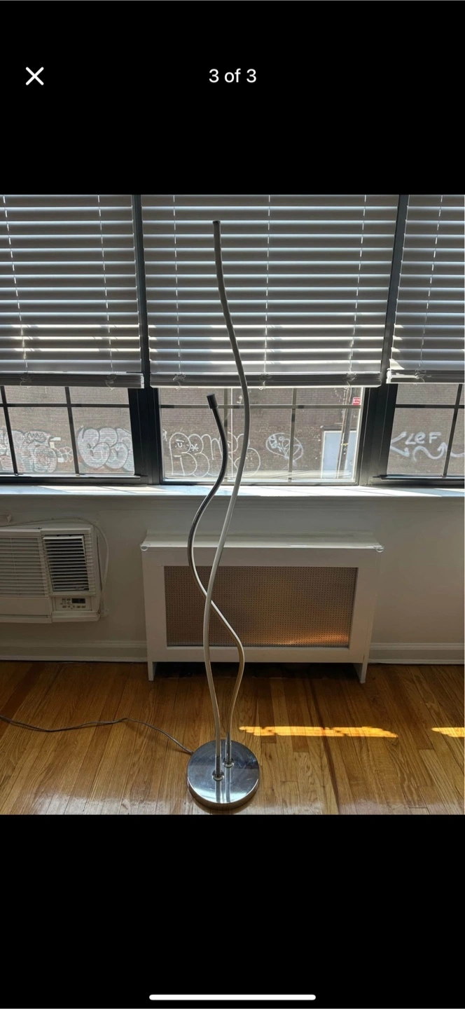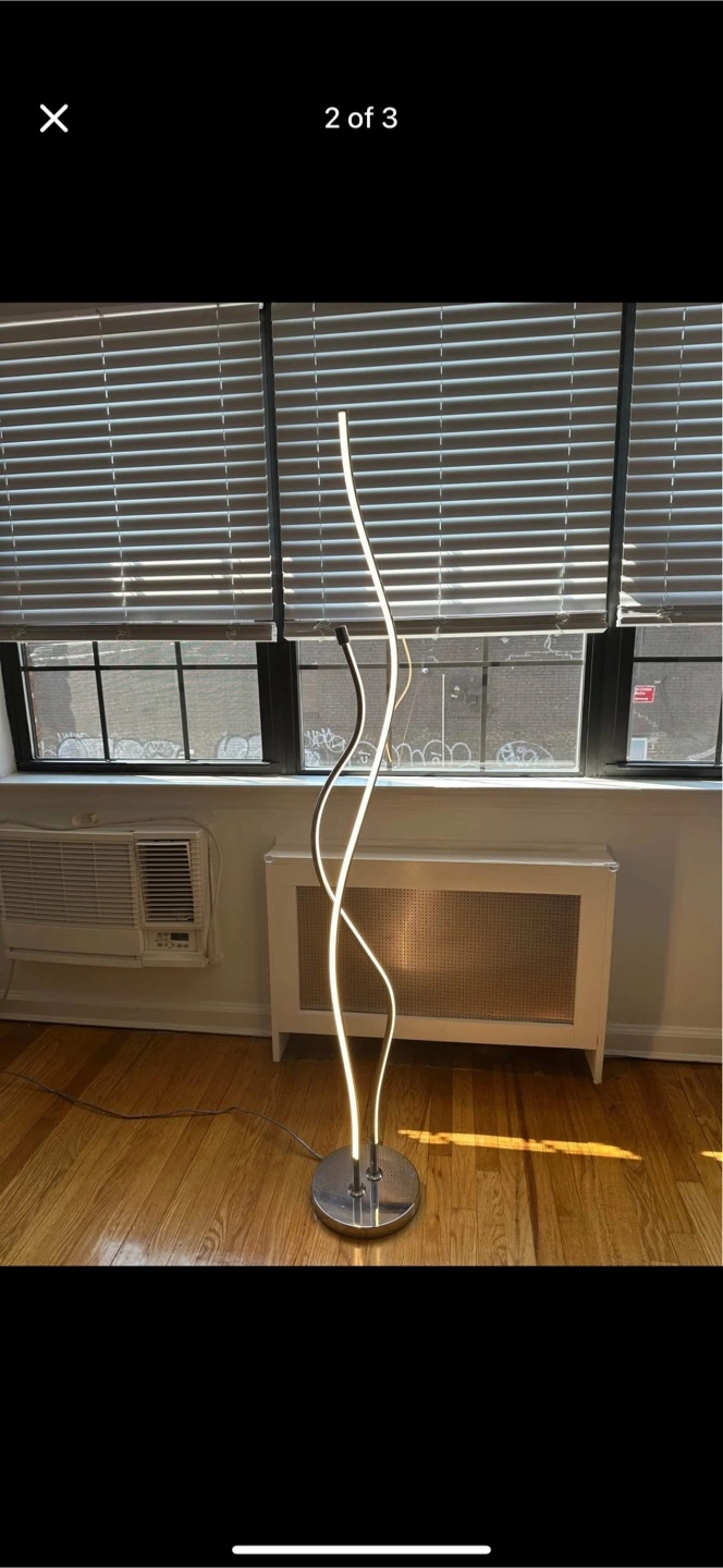 This modern LED floor lamp adds a touch of elegance to any room! Its sleek, minimalist design makes it a perfect fit for contemporary interiors. The lamp provides a warm, ambient light that's great for creating a cozy atmosphere. It's in excellent condition and ready to brighten up your space!