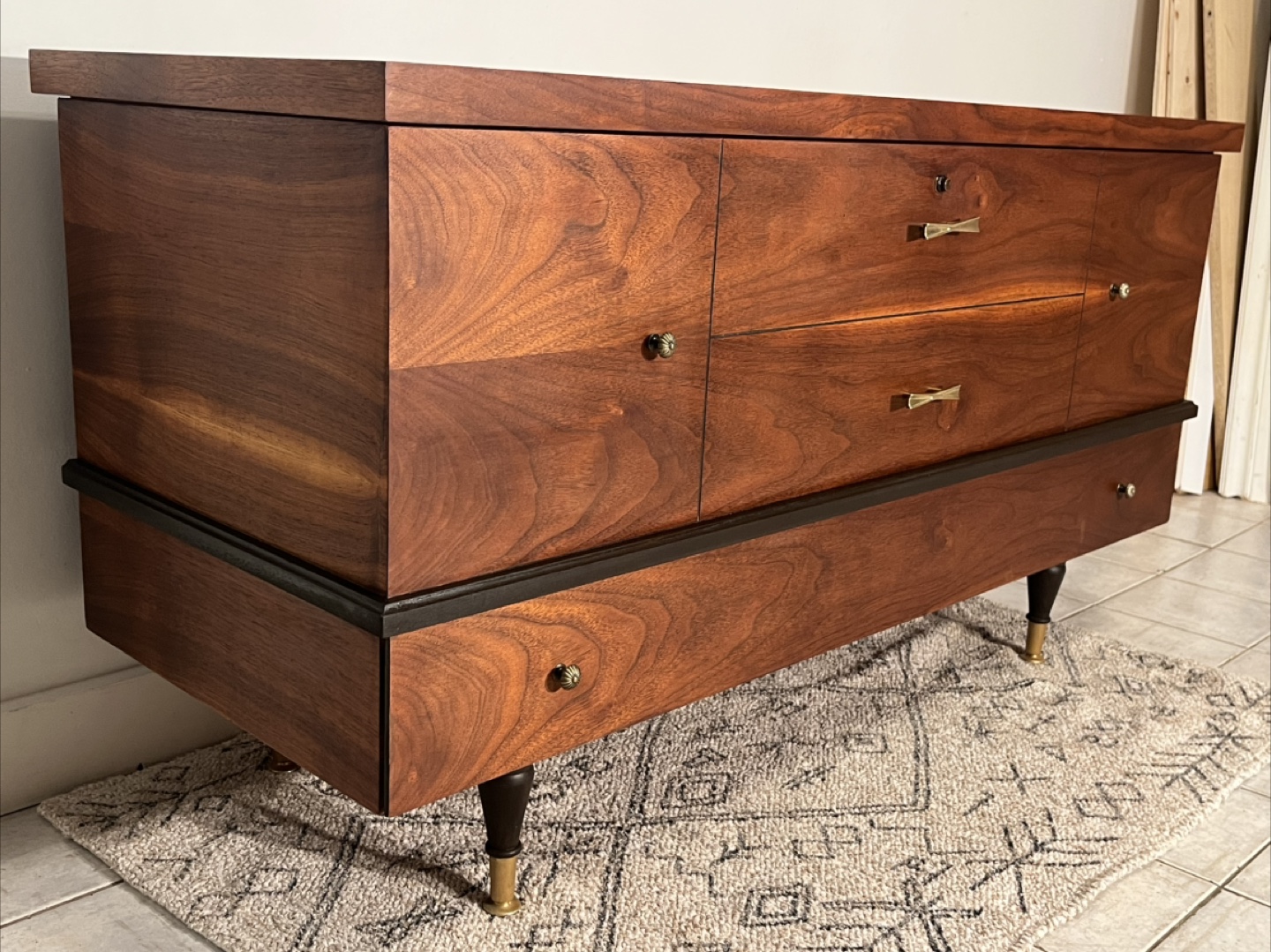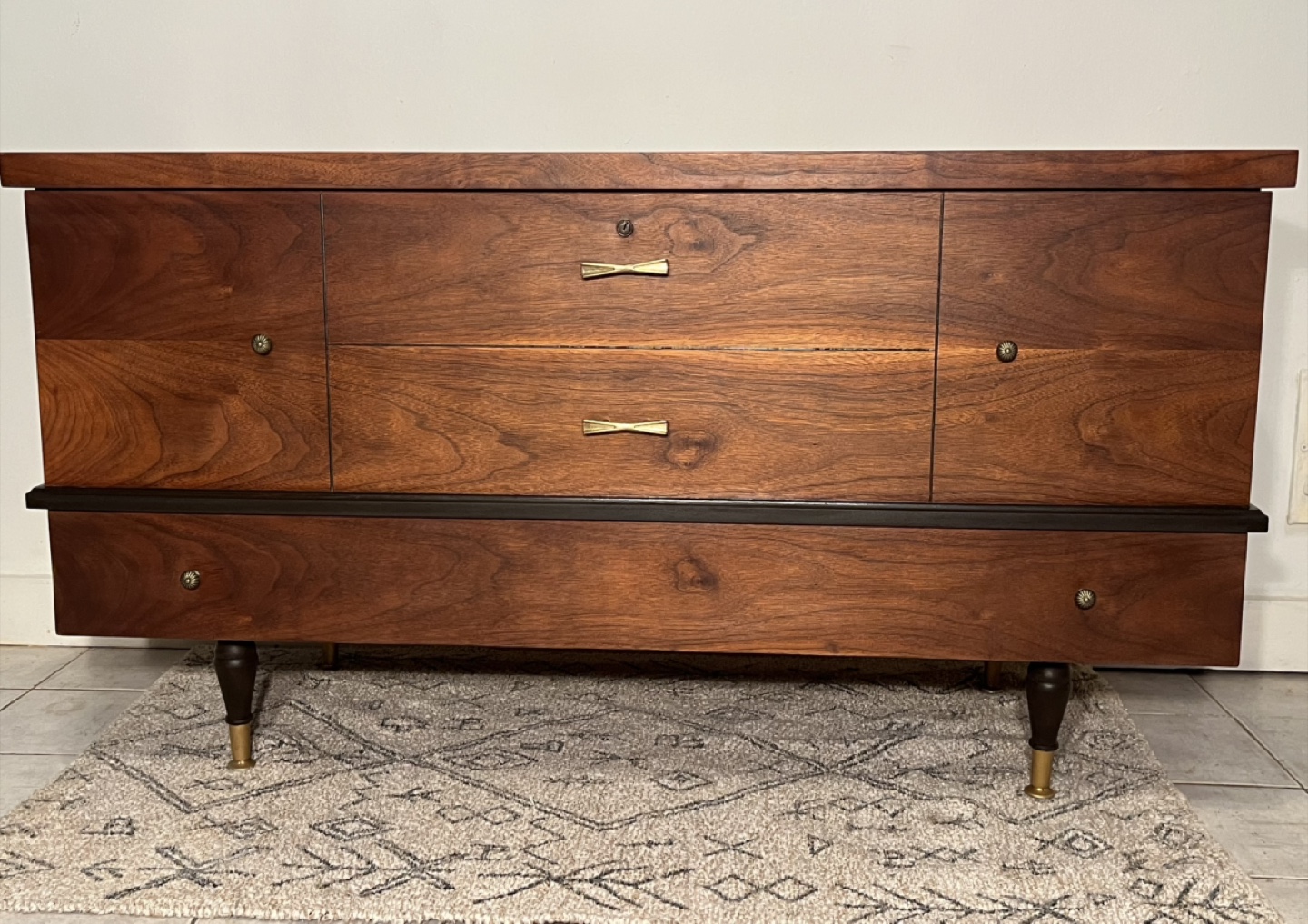 This original Walnut Mid Century Chest has been completely refinished 👌🏼 one very large drawer at the bottom with ample space lifting the top! This Chest come with a key & lock , hide your precious treasures and keep sakes 🌿