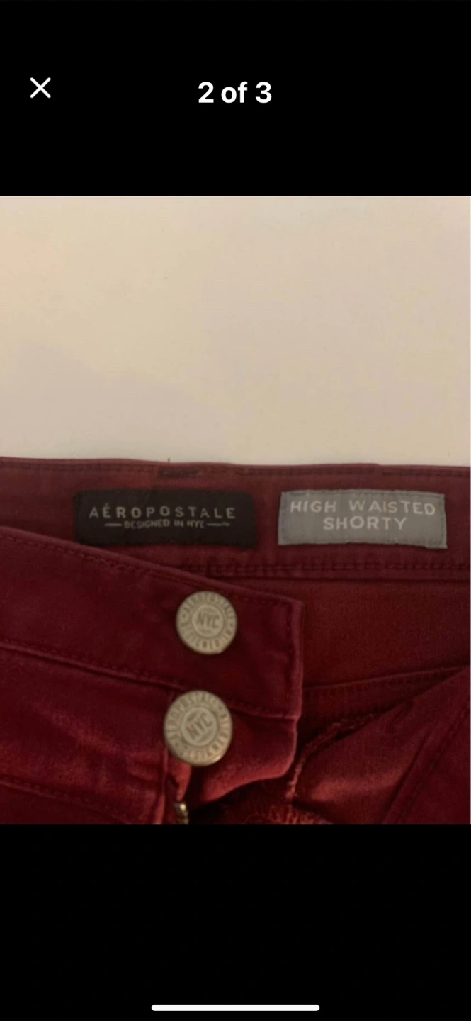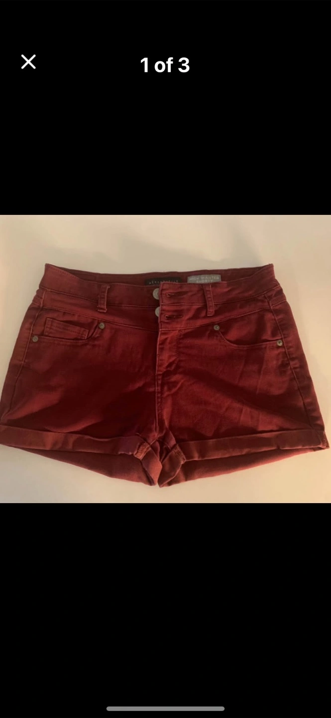 Selling a pair of Aeropostale high waisted shorty shorts in size 6. They're in great condition and ready for a new home! The material is a blend of 79% cotton, 19% polyester, and 2% spandex, making them comfy and stretchy
