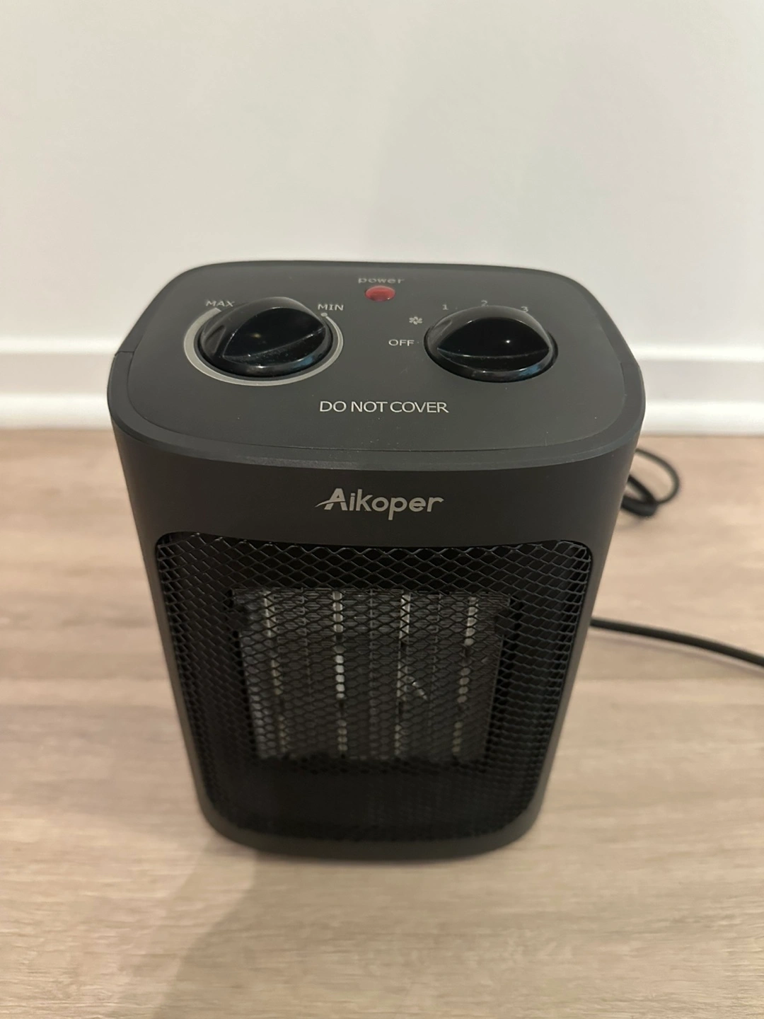 3 heating modes with tip-over safety. Adjustable thermostat. Indoor and office-use