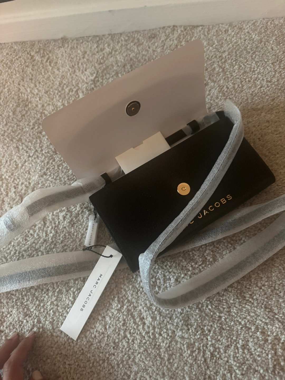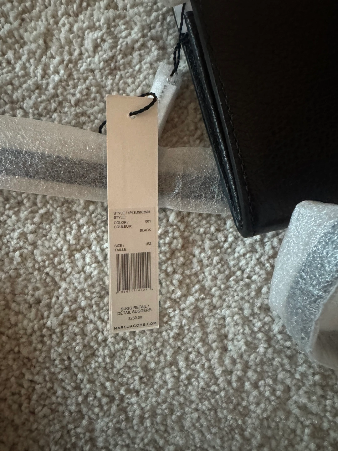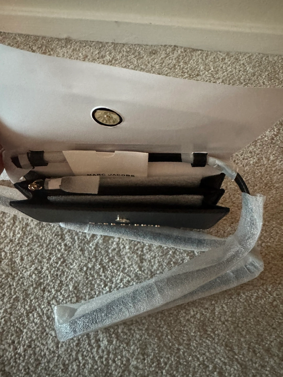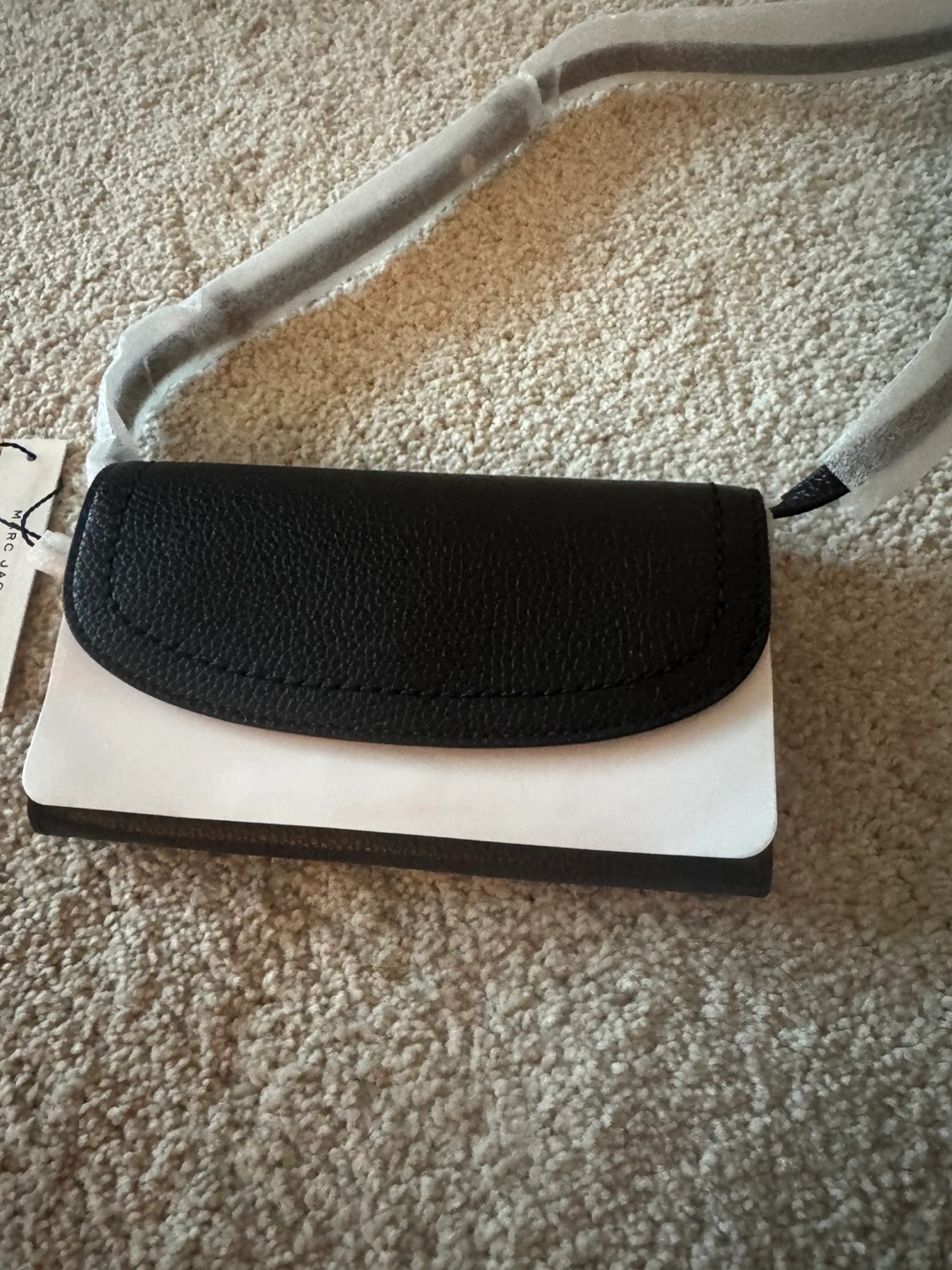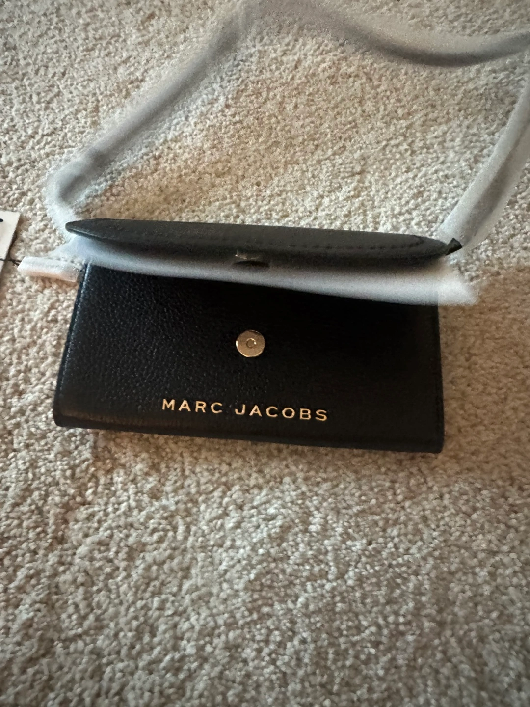 This is a brand new Marc Jacobs black leather crossbody wallet. It's never been used and still has the original packaging. The suggested retail price on the tag is $225. It's a stylish and practical accessory!