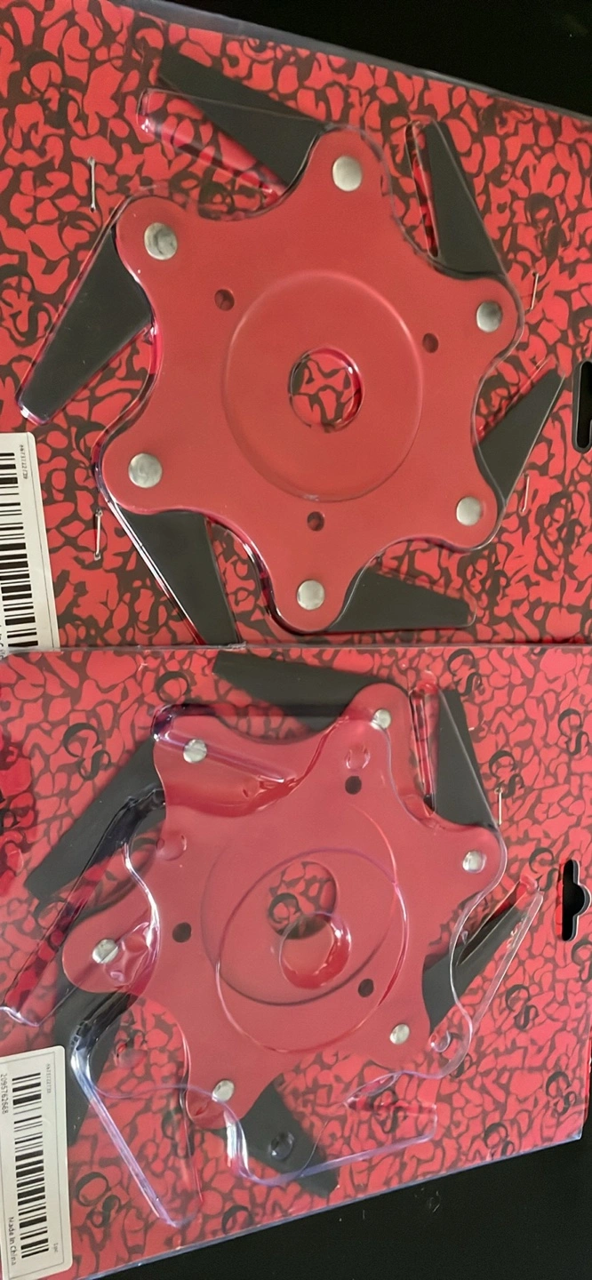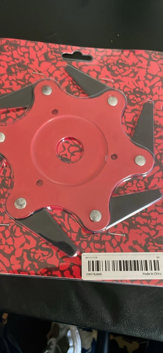 2 Pcs, This is a brush cutter head weed trimmer. It's great for getting into those hard-to-reach spots in your yard. It has a red and black design and is made in China