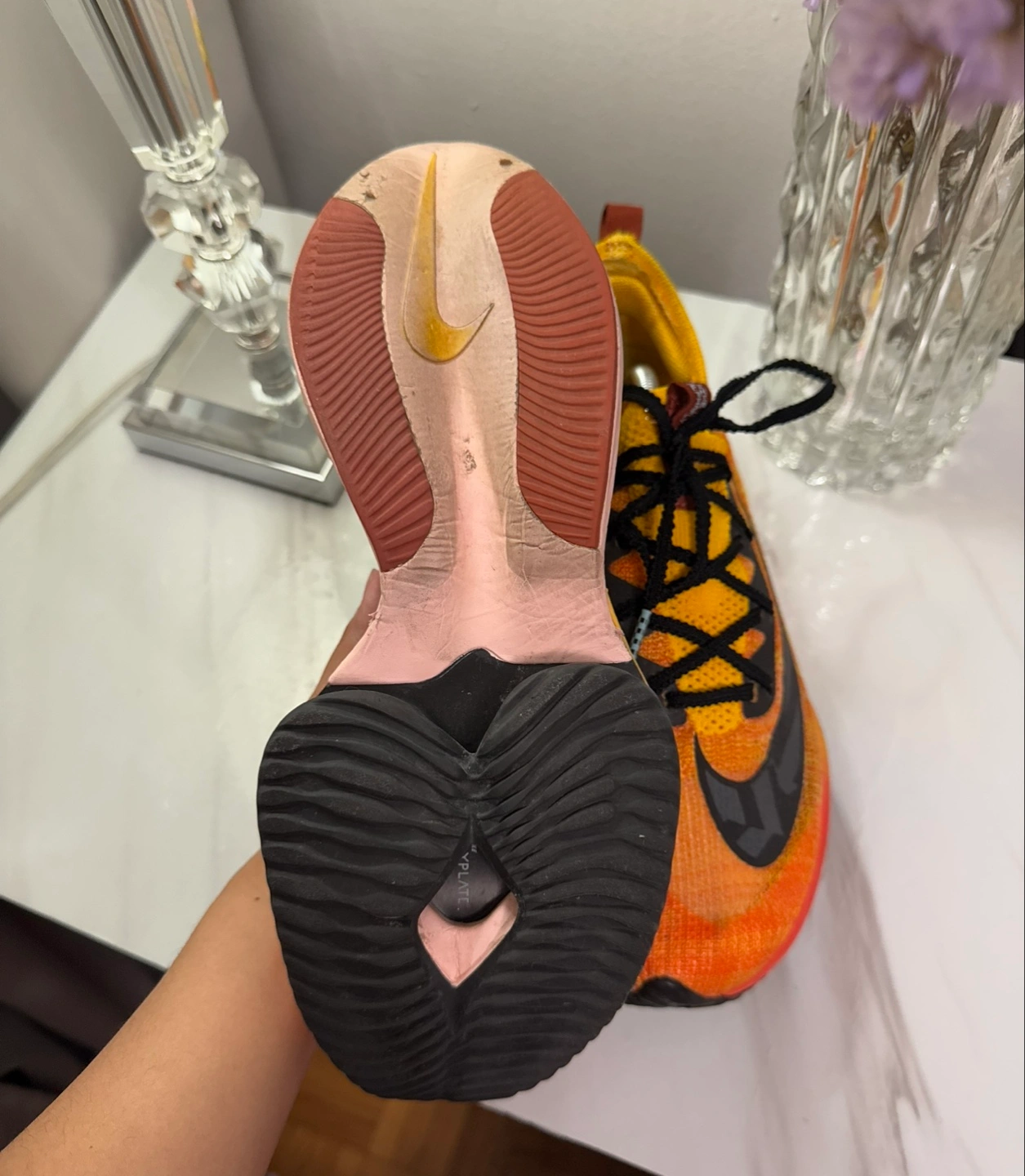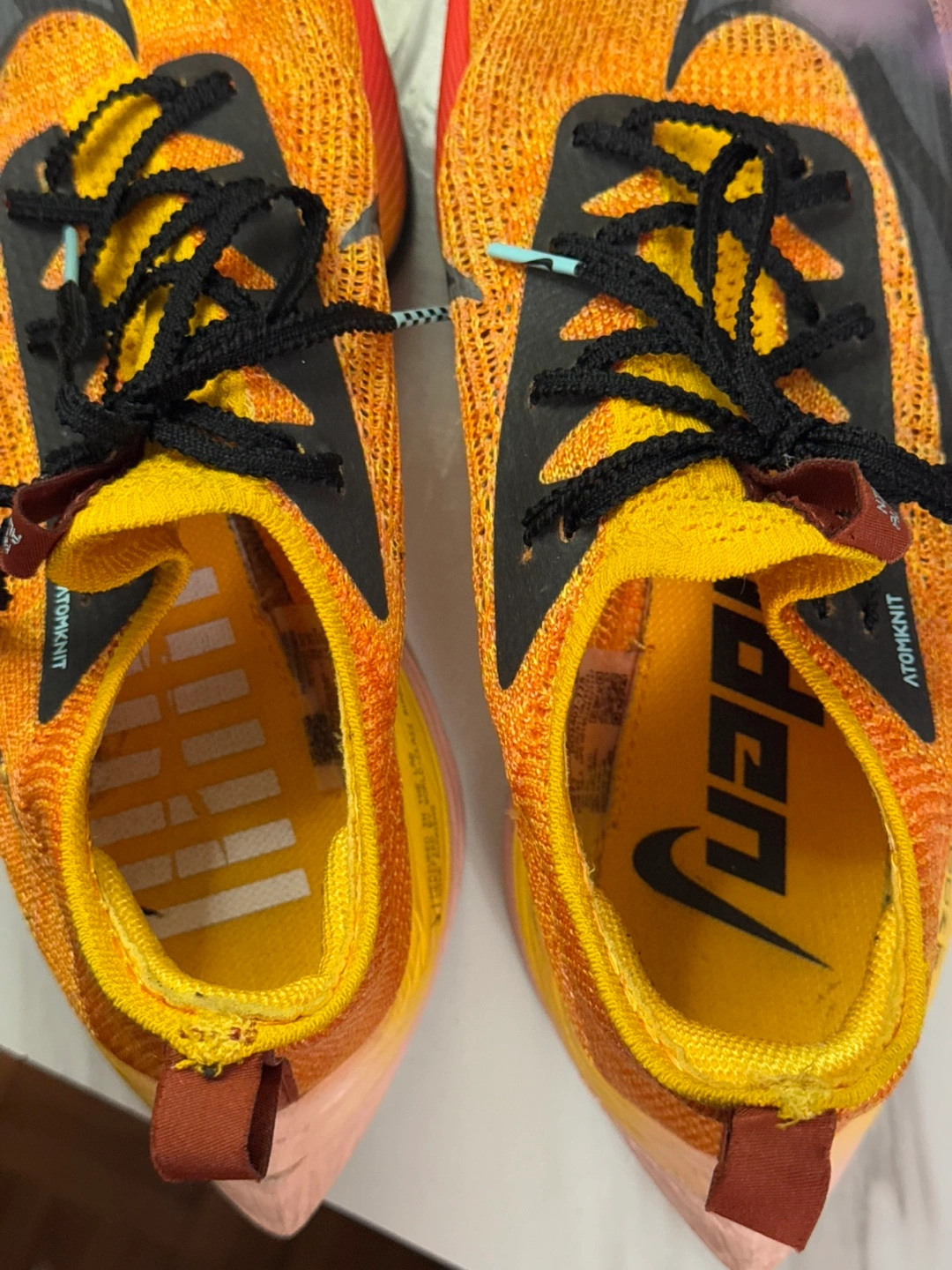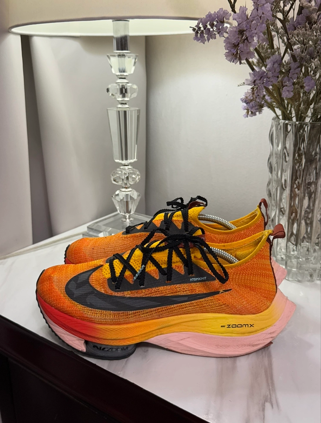 Selling a pair of Nike ZoomX Alphafly NEXT% running shoes. These are great for running and have a unique design. They feature Atomknit technology and a ZoomX midsole for ultimate performance and comfort.