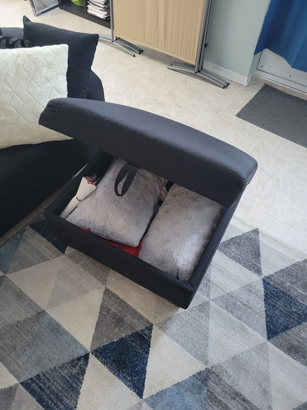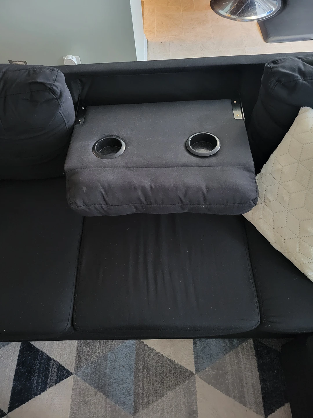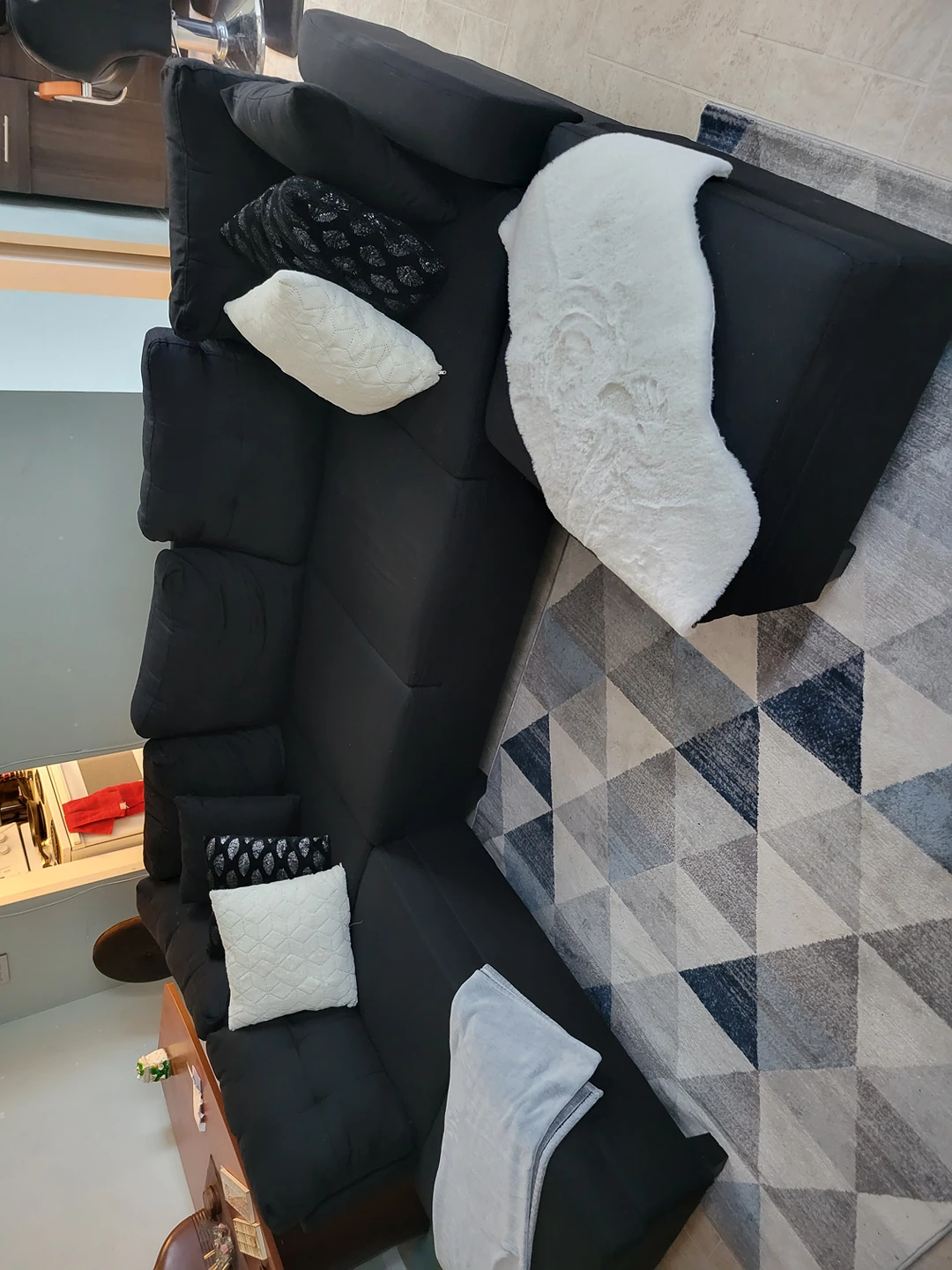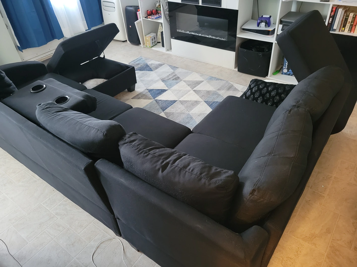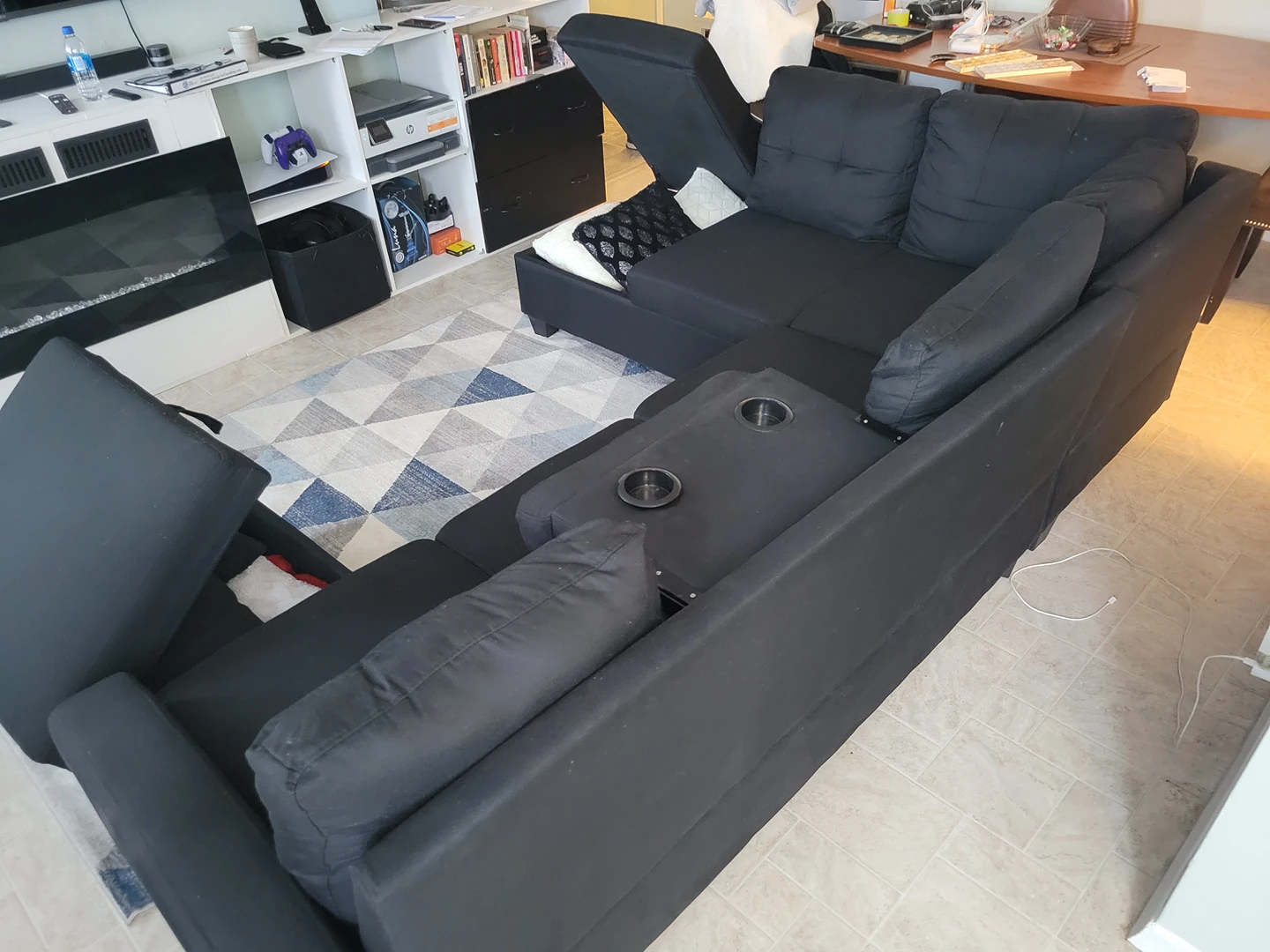 54This sectional is in good condition. smoke and pet free home. regularly cleaned, top cushions can to taken off for washing. it has two storage compartments and cup holders. it can be taken apart for easier transport. this couch is perfect for a small living space.