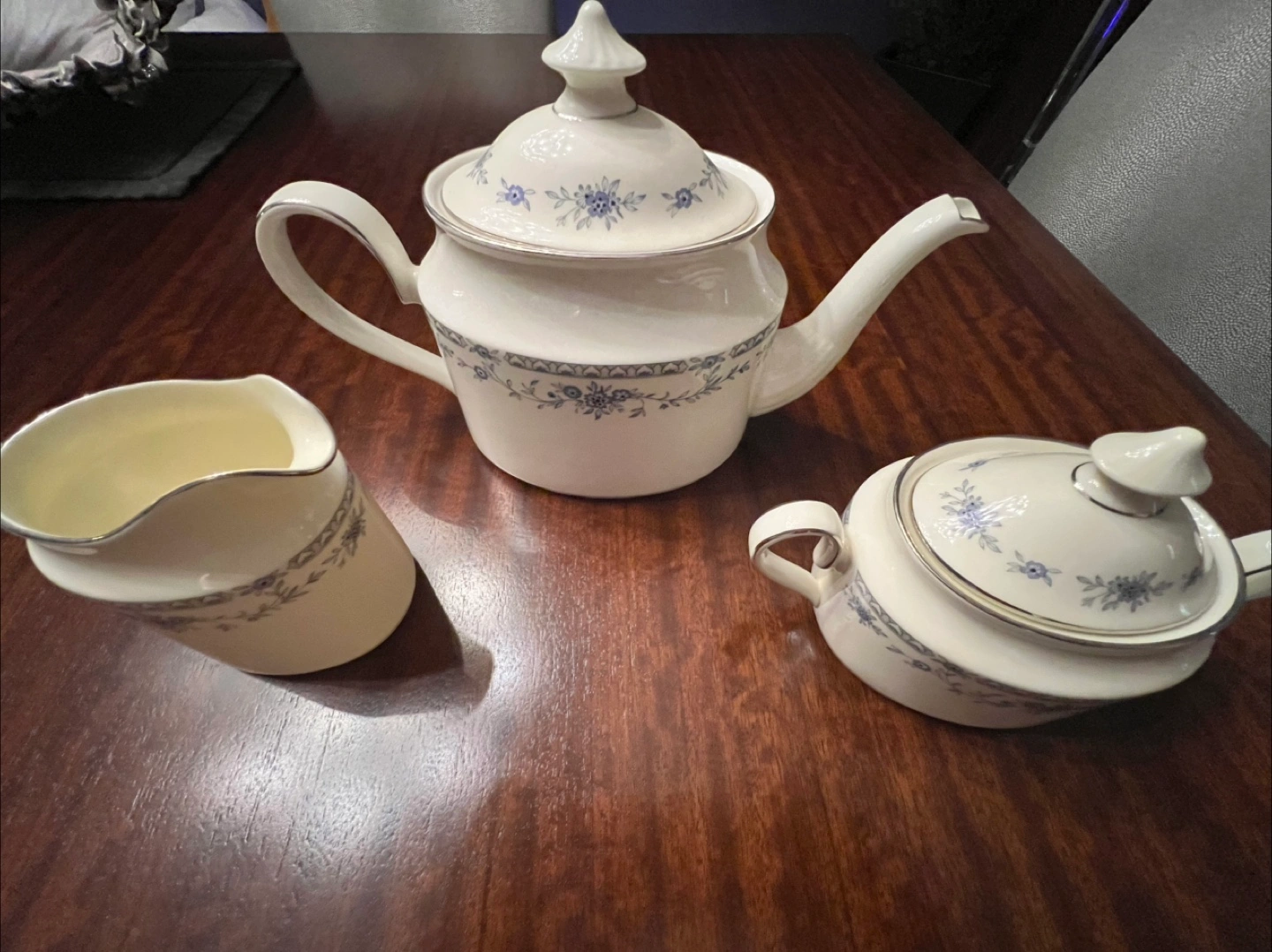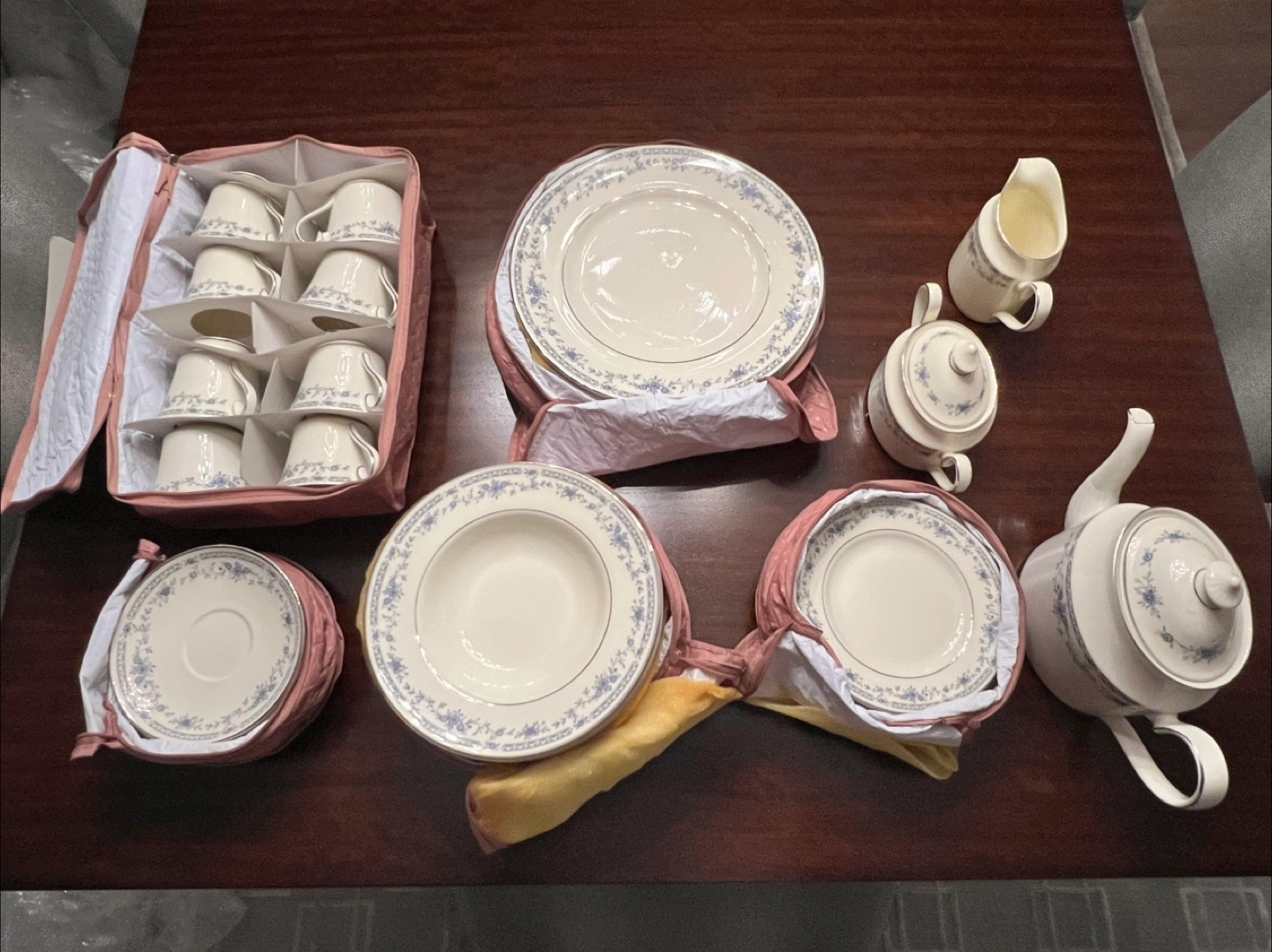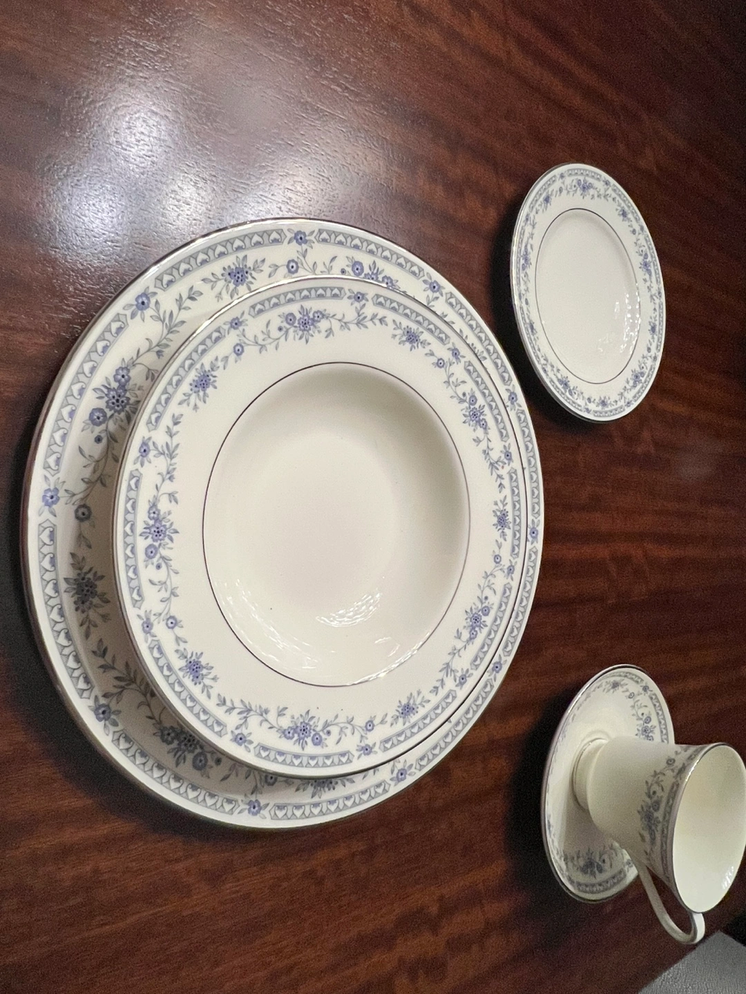 Selling a beautiful Minton Bellemeade bone china dinnerware set for 8! This set features a delicate floral pattern in blue and white, perfect for adding a touch of elegance to any dining occasion. The set includes plates, bowls, cups, and other essential pieces. It's in great condition and ready to be enjoyed in a new home!
