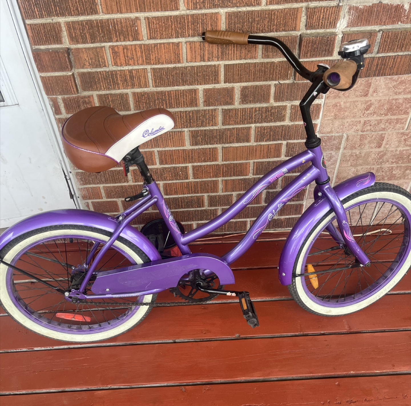 Selling a Columbia Sterling cruiser bike in purple! It's in good condition and ready for some fun rides around town. The bike features a comfortable brown and white seat and classic cruiser handlebars. 15β wheels, the brakes are on the pedals