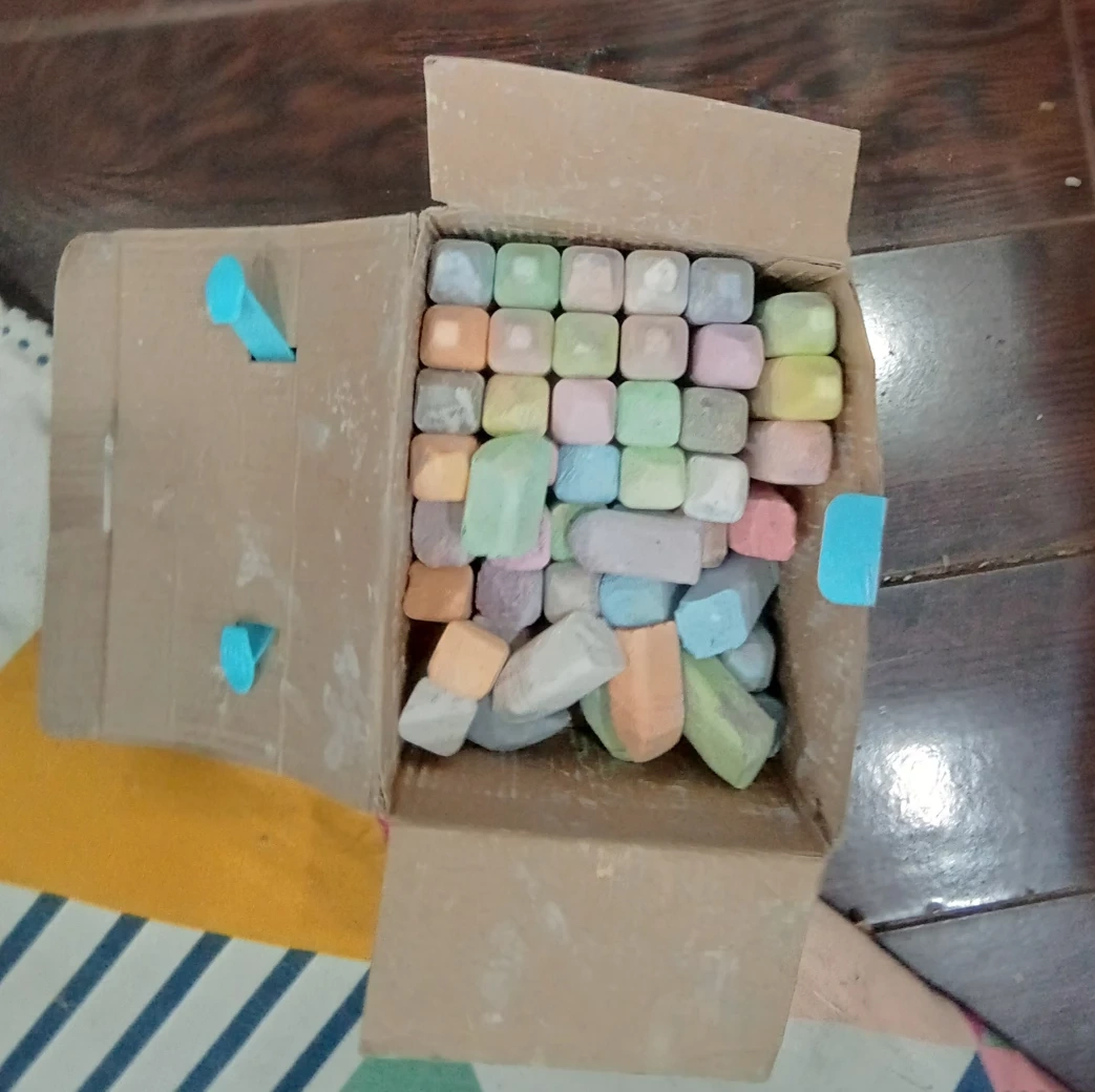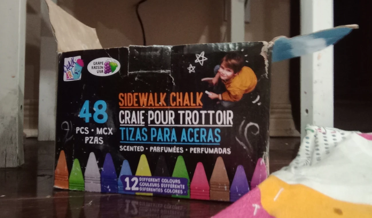 A box of Chalk Art sidewalk chalk. The box contains pieces of chalk in different colours. Perfect for some outdoor fun!