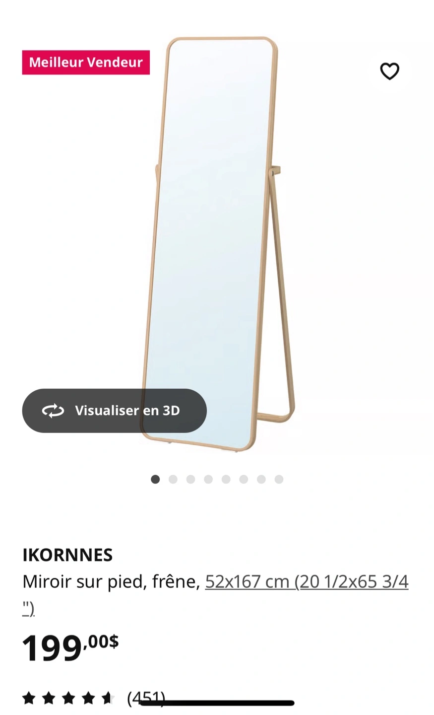 Selling an IKORNES standing mirror . It measures 52x167 cm (20 1/2x65 3/4 "). This mirror is perfect for any room and adds a touch of elegance to your space! Originally bought for $199
