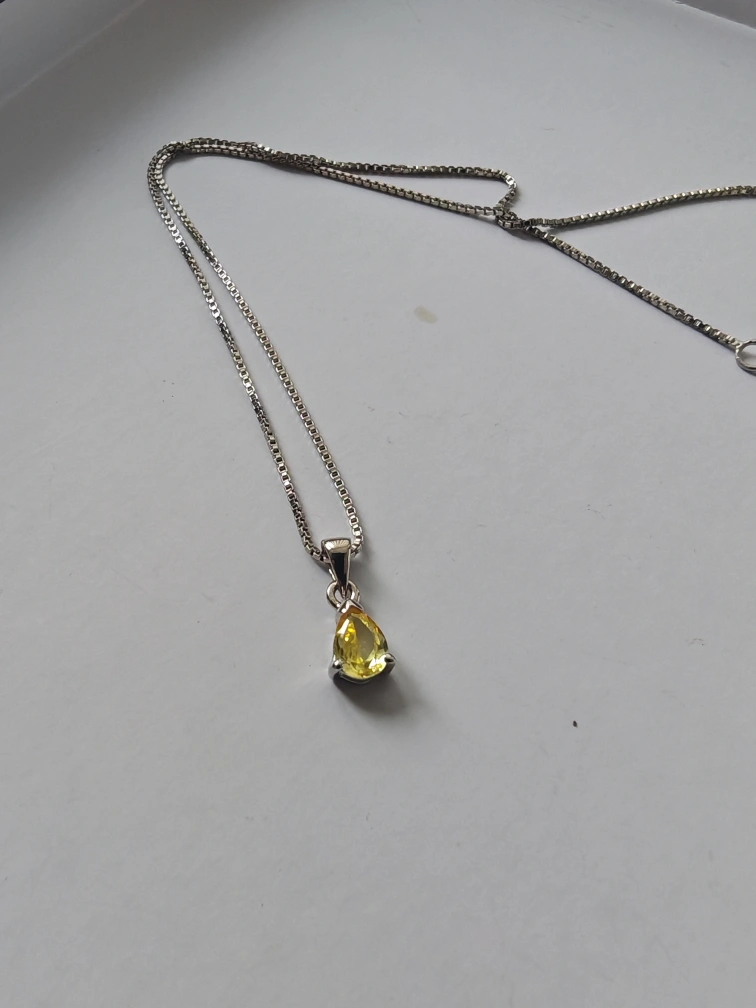 A delicate necklace featuring a yellow gemstone pendant. It's in great condition and ready to add a pop of colour to your look!