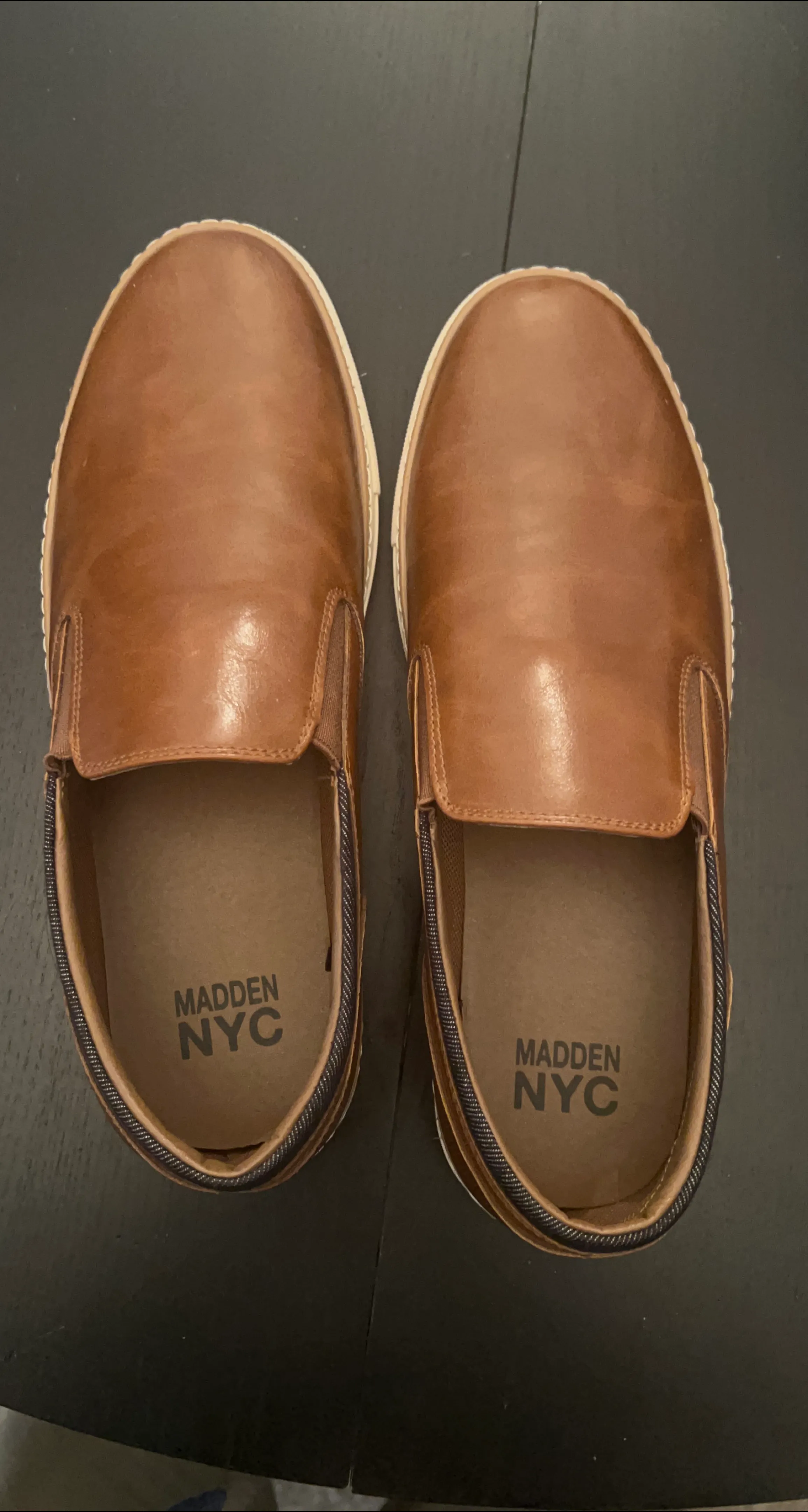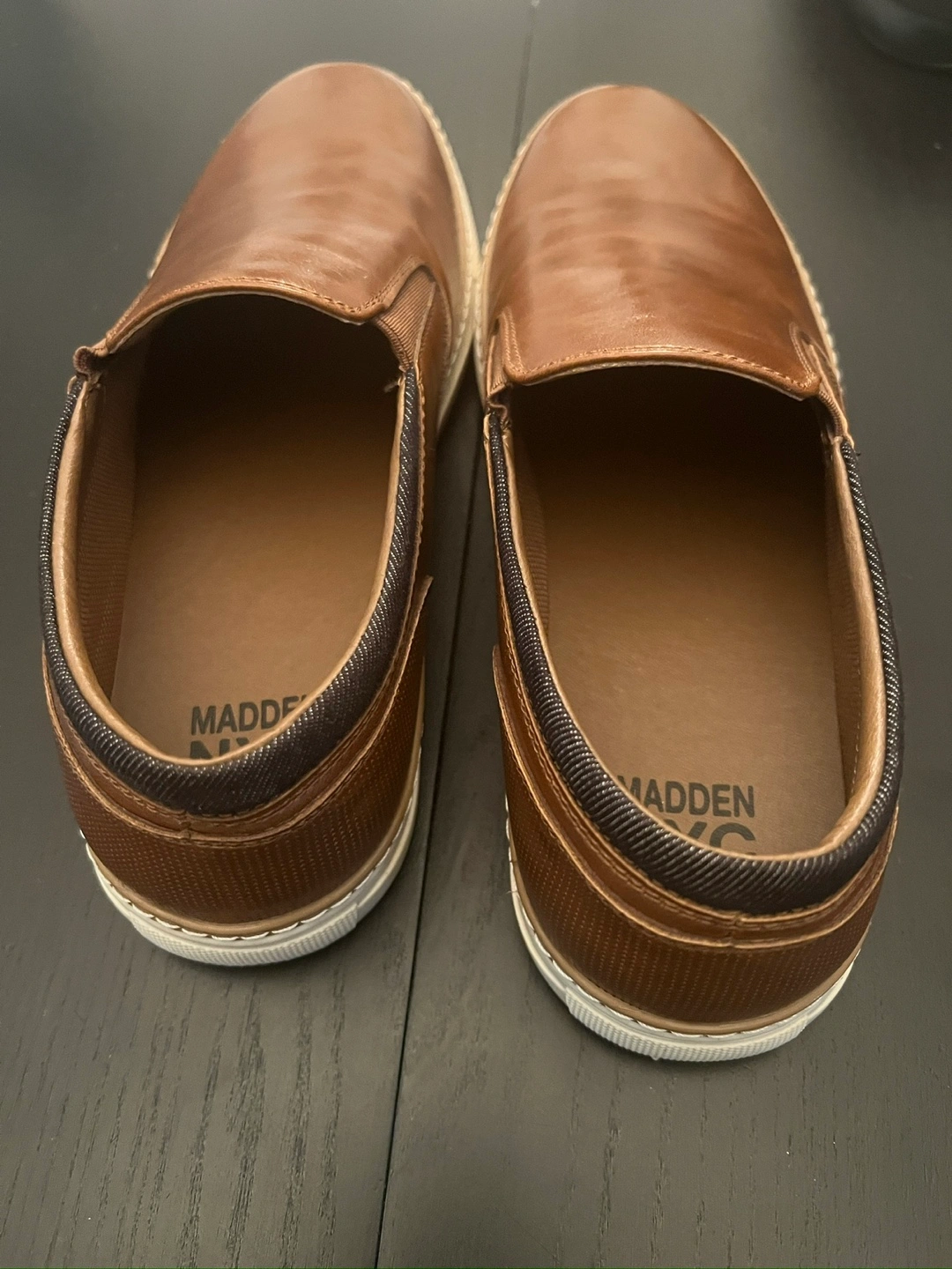Selling a pair of Madden NYC slip-on shoes in brown leather. They're in great shape and ready for a new home! They are perfect for a casual look and easy to wear.