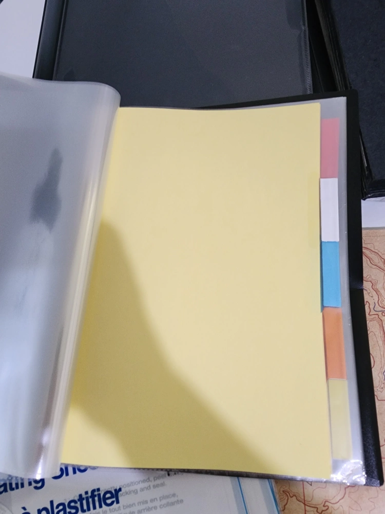 Studio self-adhesive laminating sheets, letter size. Includes 3 sheets with easy peel backing and archival quality. Also included are various sheets of paper and a binders for students or creativity. Giving to any artists