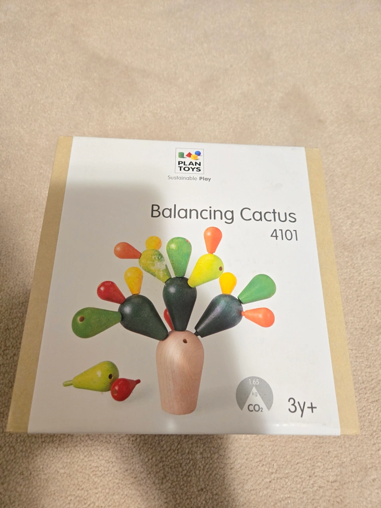 Selling a Plan Toys Balancing Cactus game! It's a fun and engaging toy for kids aged 3 and up. The set comes with all the pieces and the original box