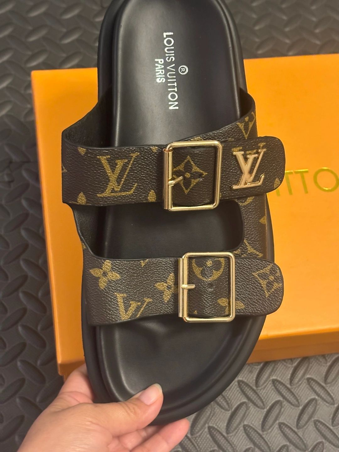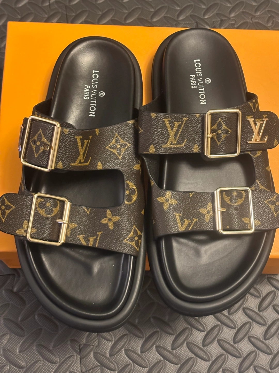 Selling a pair of Louis Vuitton sandals with the iconic monogram pattern! These stylish sandals are a size 39 and come with the original box. They are in great condition and ready for a new home