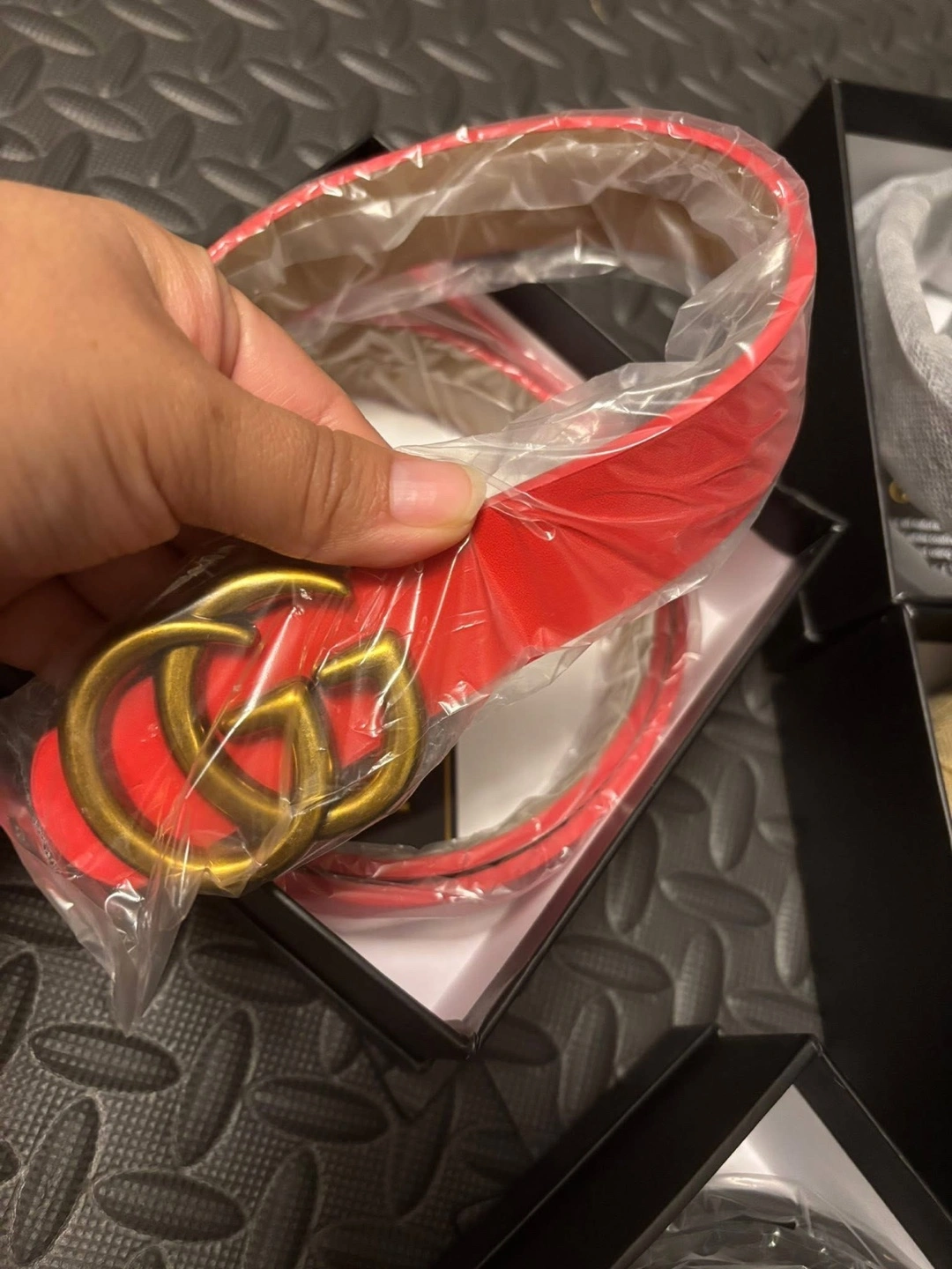 Selling a brand new Gucci belt! It's a vibrant red with a gold GG buckle and comes with the box. Perfect to add a pop of color to any outfit!