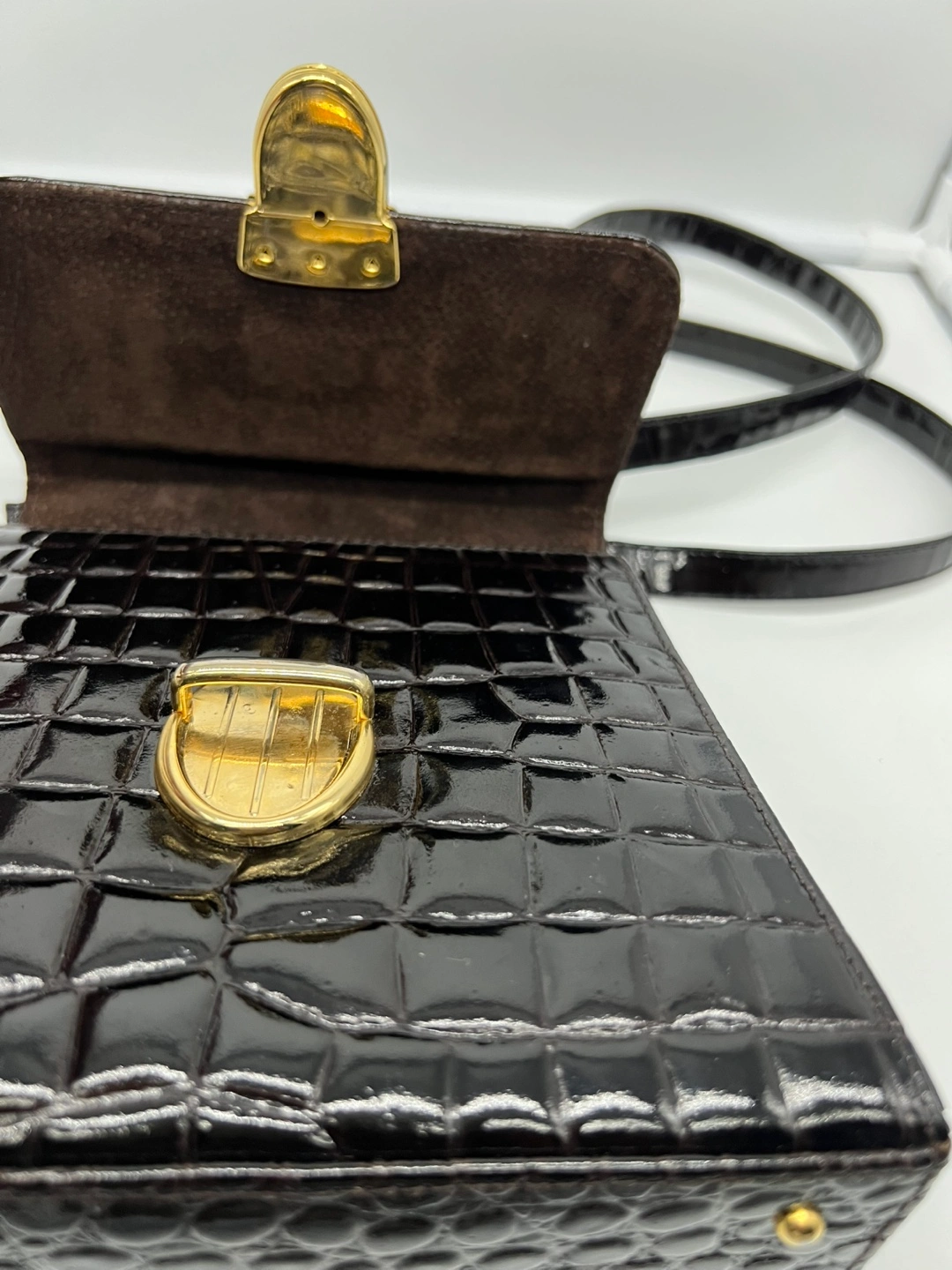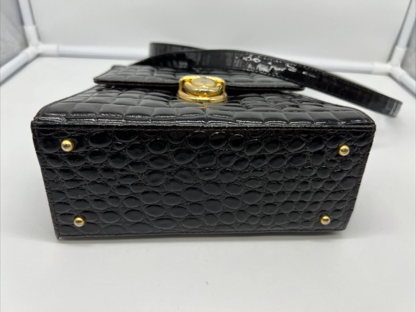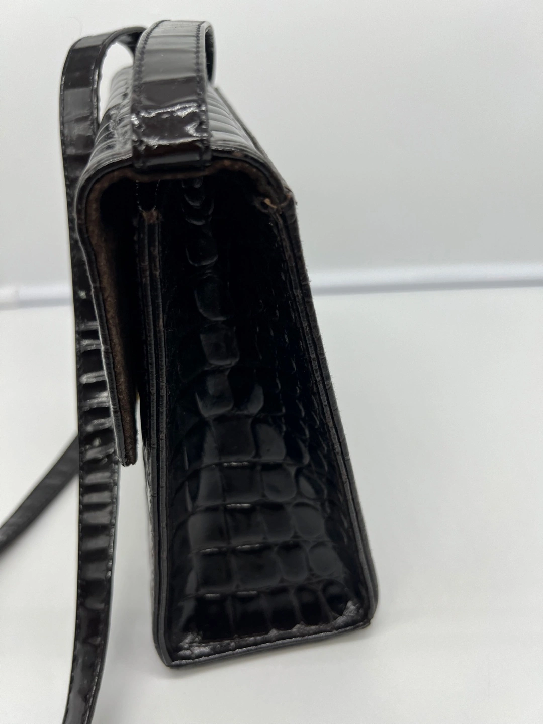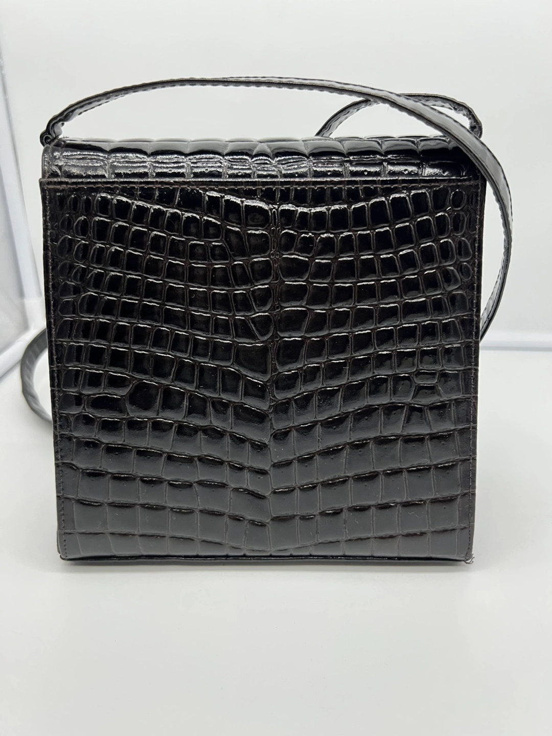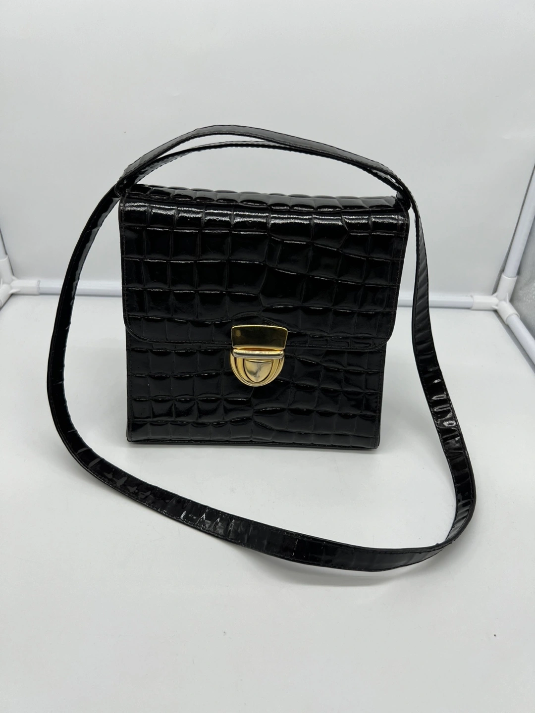 6.75in L, 6.75in H, 3in W, 21in strap drop