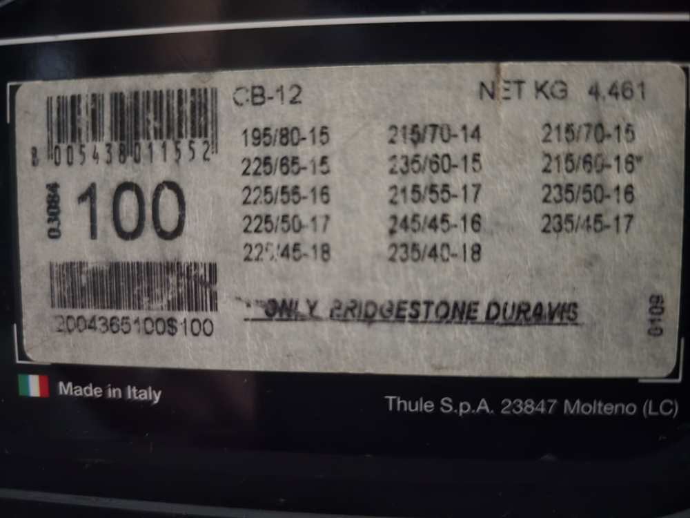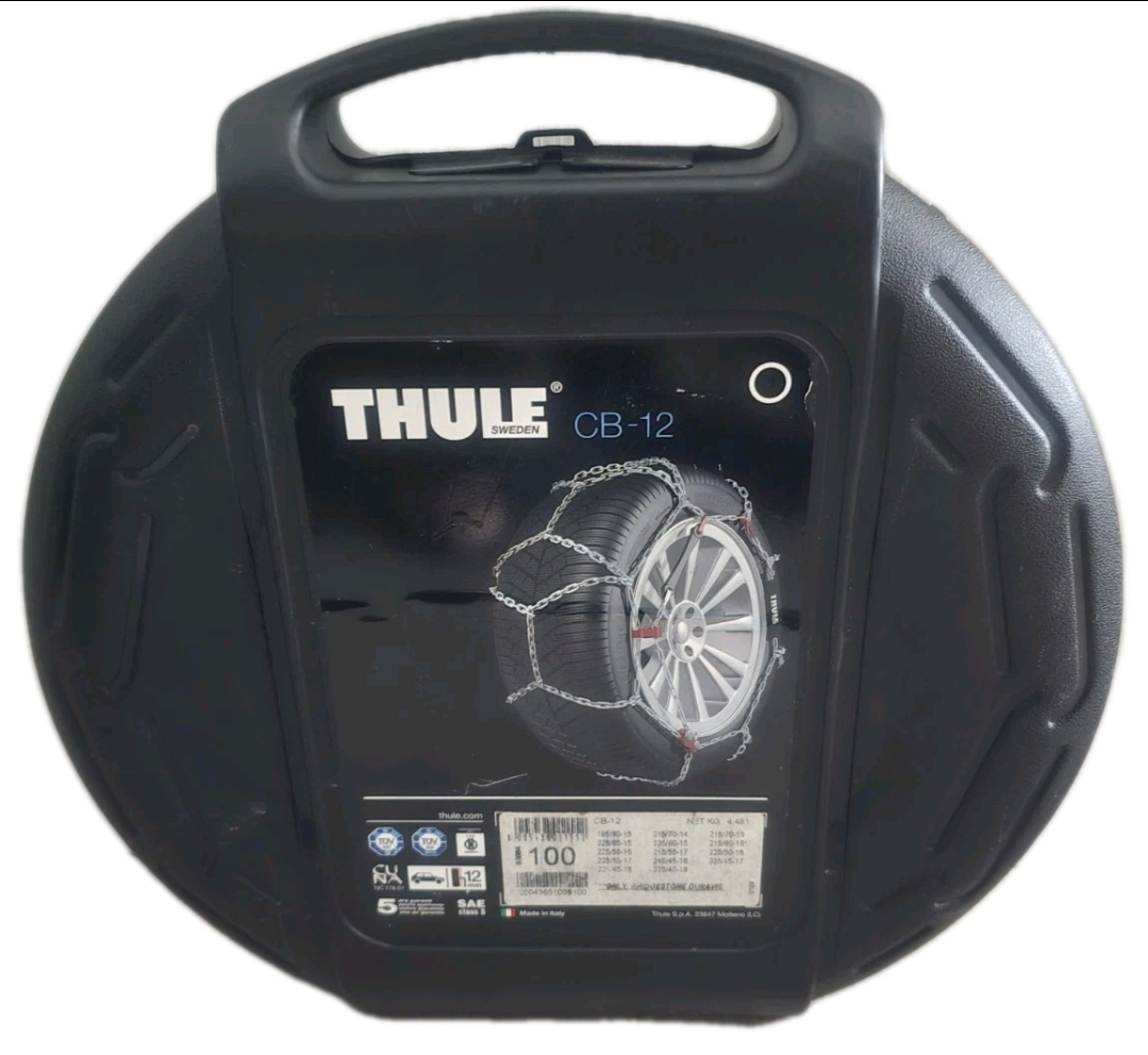 Selling a Thule CB-12 passenger car snow chain, size 100. These chains are easy to install and remove, making them super convenient for winter driving. The set includes the instructions and comes in its original box