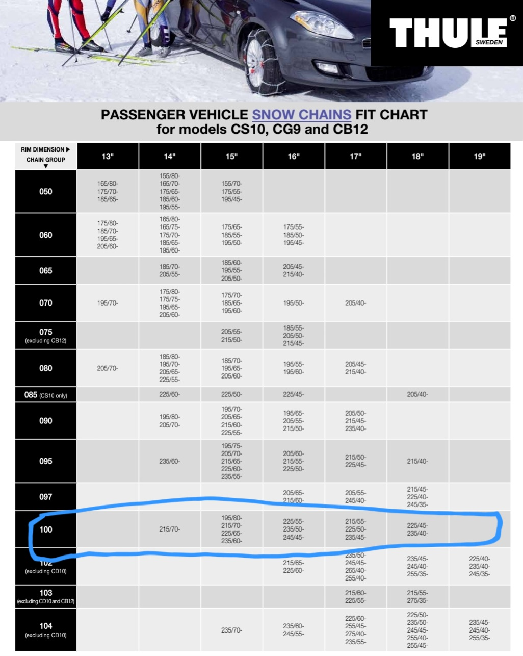 Thule CB-12 Passenger Car Snow Chain, Size 100