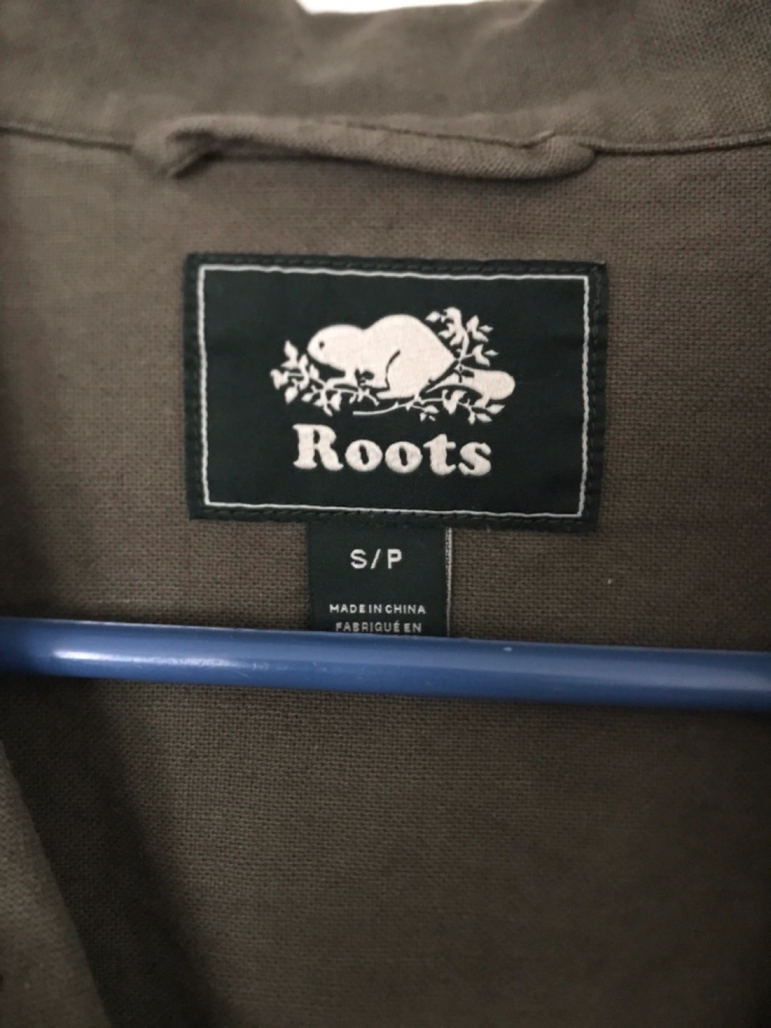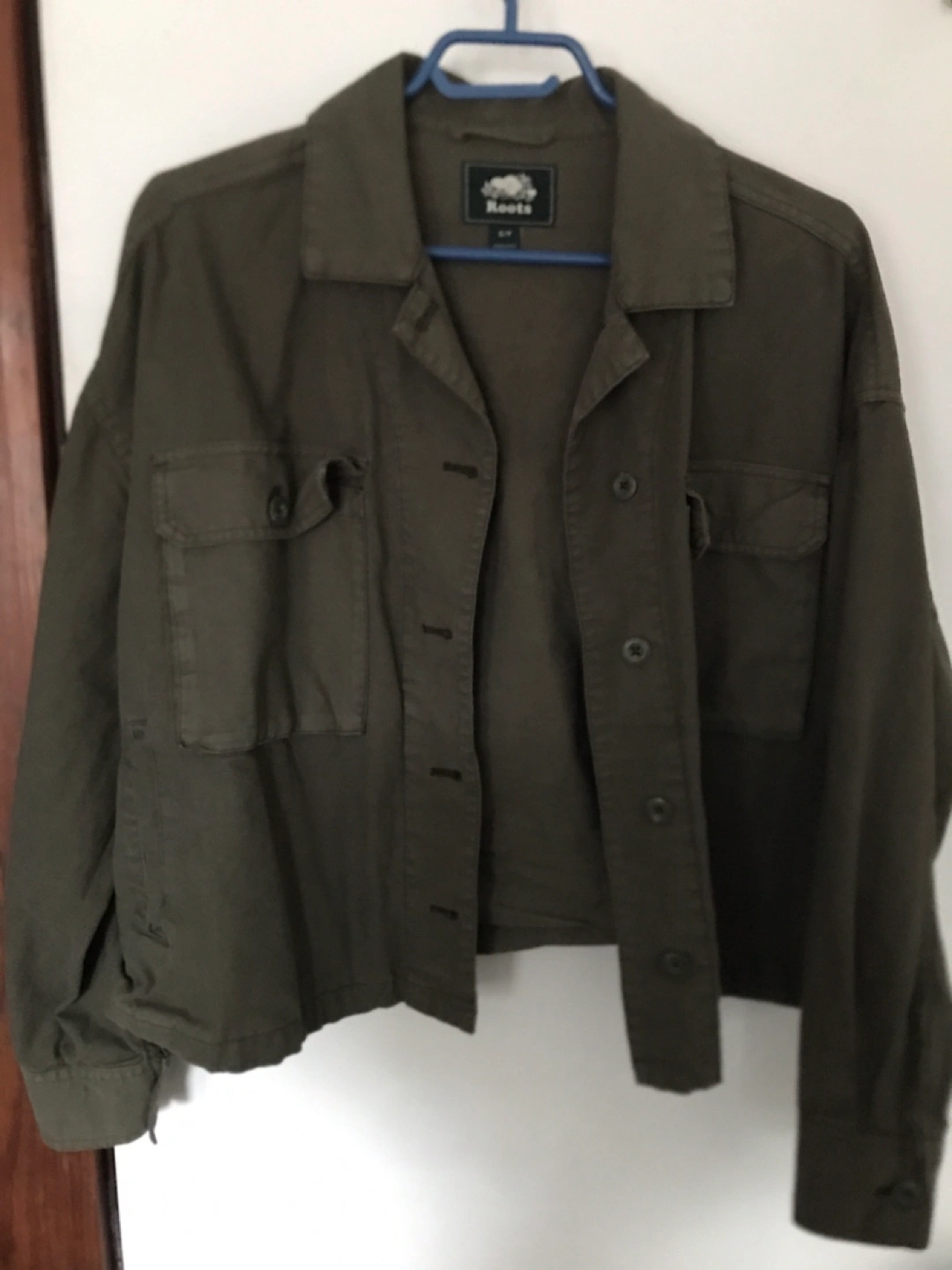 Never worn before Roots jacket! Size small but fits on the looser side. Material is canvas and very durable, and the jacket is on the lighter side - perfect for spring and summer!