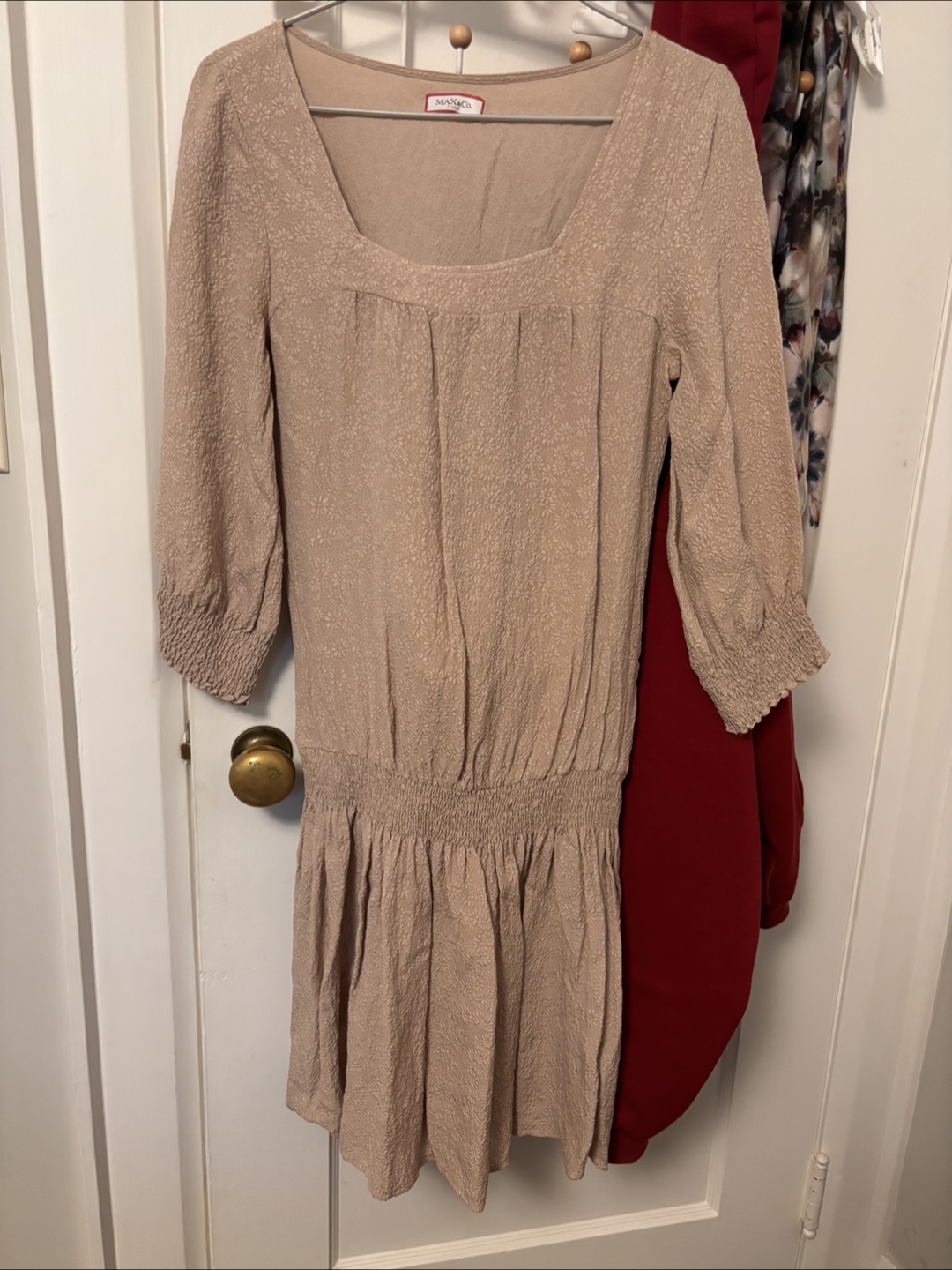 Selling a cute Max&Co. dress in a dust rose colour. It's a size 2 (US). The dress is made of 100% textured silk. Perfect for a summer day!