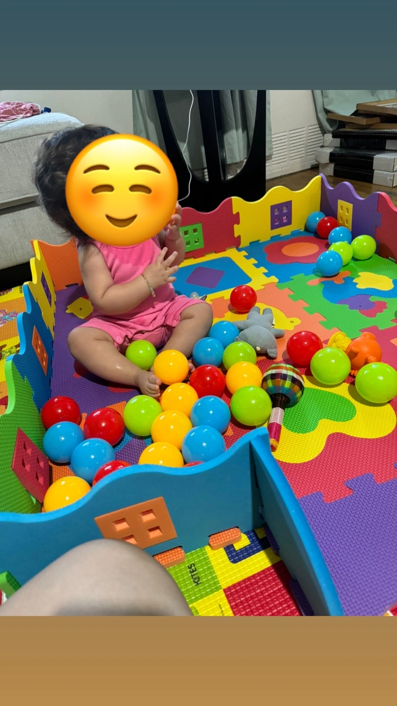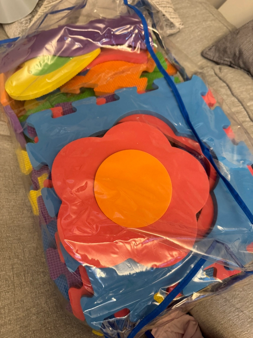 I'm giving away a colorful foam puzzle play mat! It's perfect for kids to play on and explore. The mat is made of soft foam, making it safe and comfortable for little ones. It's in great condition and comes in a variety of colors and shapes. Does not include the balls!!!
