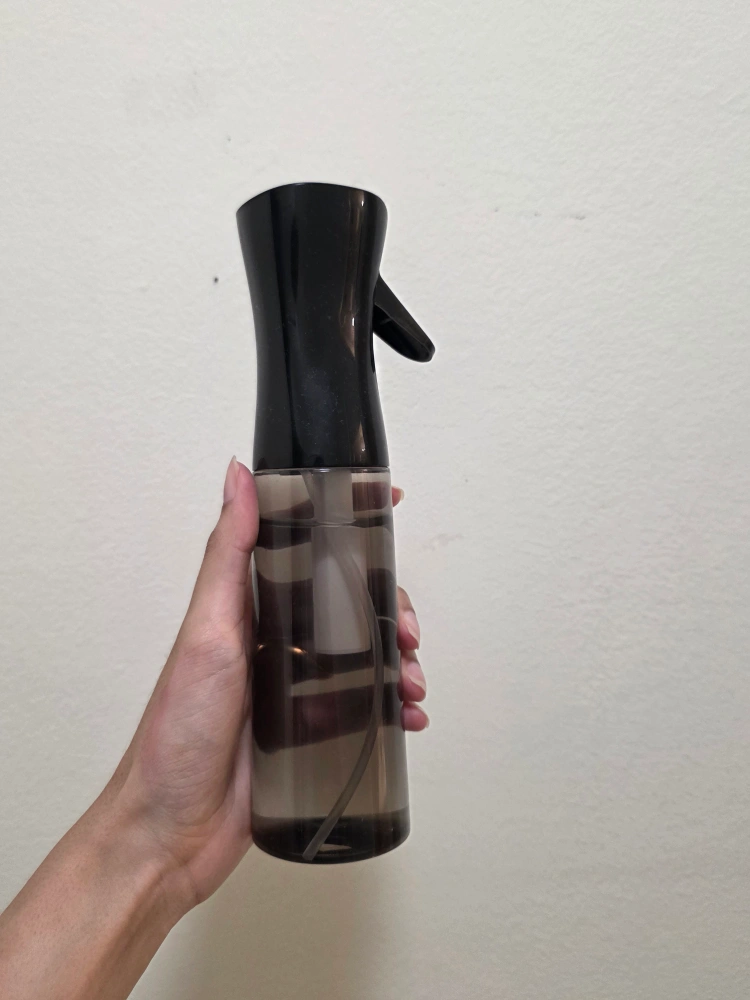 I'm selling a continuous spray bottle in black. It's perfect for various uses around the house! It sprays evenly and consistently, making it super handy