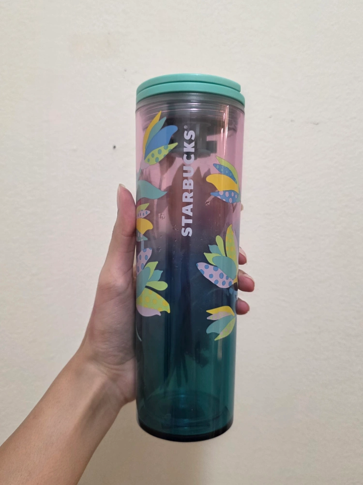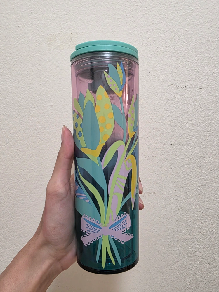I'm selling a Starbucks tumbler that's perfect for keeping your drinks cold! It has a pretty floral design and a secure lid. Great for everyday use or as a gift!