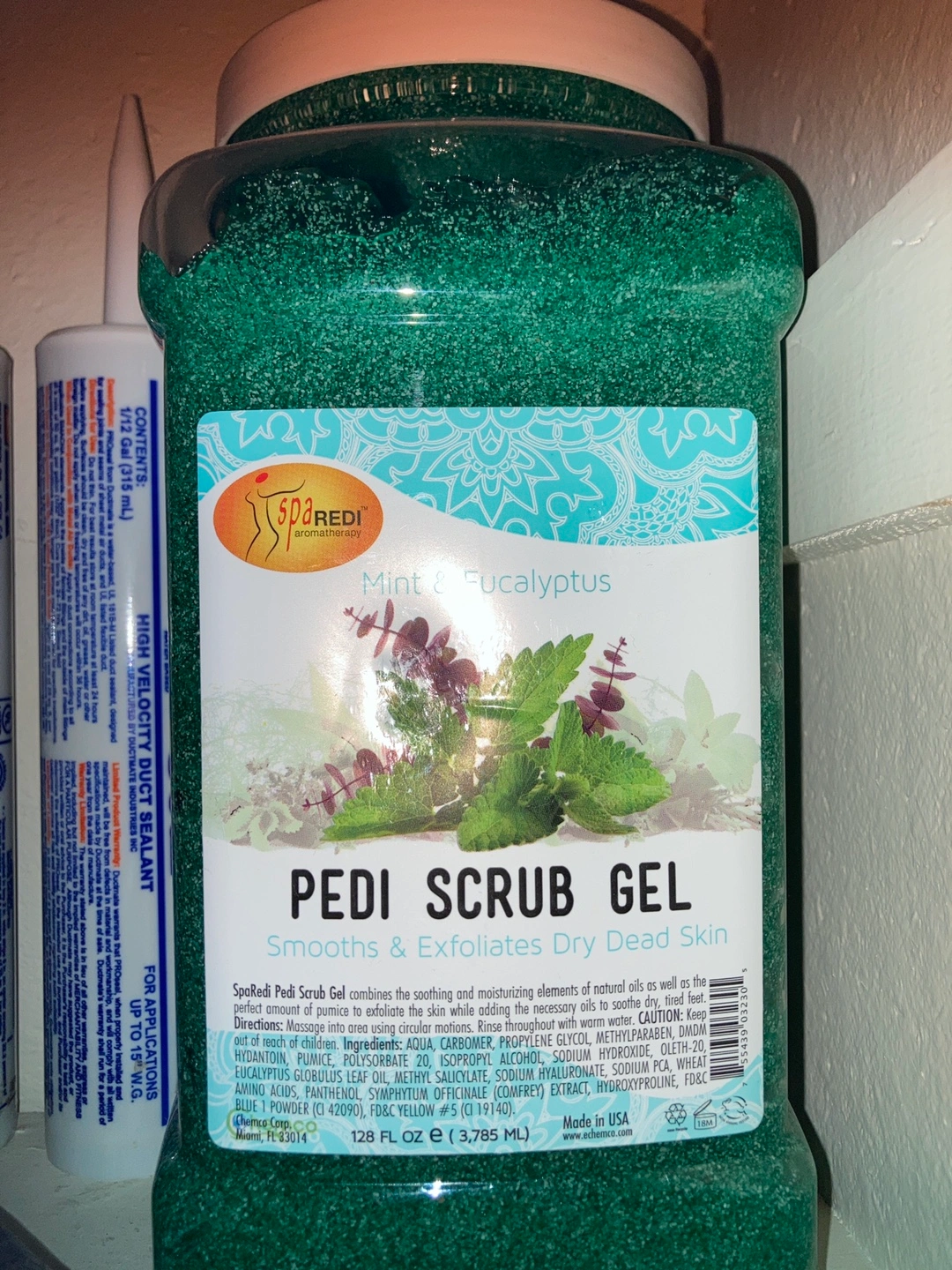 Didn’t like free to someone who wants it! SpaRedi Pedi Scrub Gel combines the soothing and moisturizing elements of natural oils, plus pumice to exfoliate your skin. It's designed to smooth and exfoliate dry, tired skin. 128 fl oz (3,785 mL)