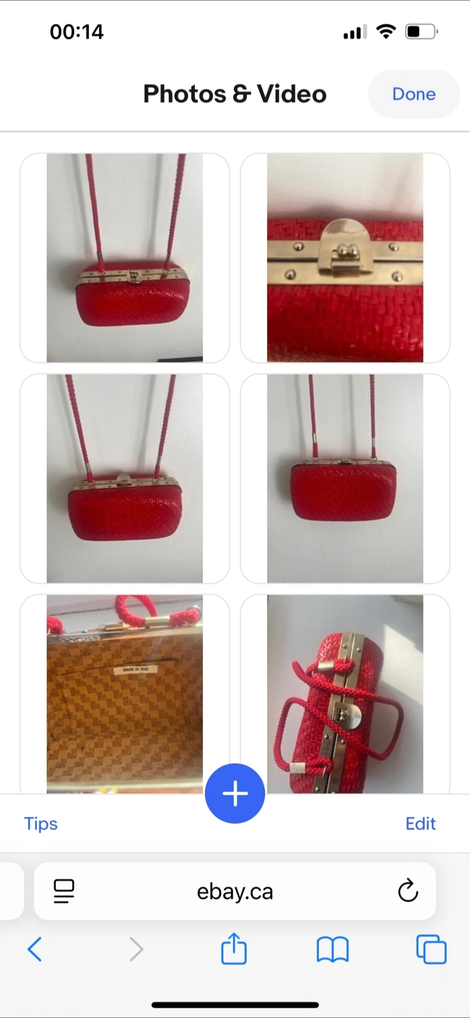 Vintage red with gold hardware, Italian woven wicker bag square style camera
