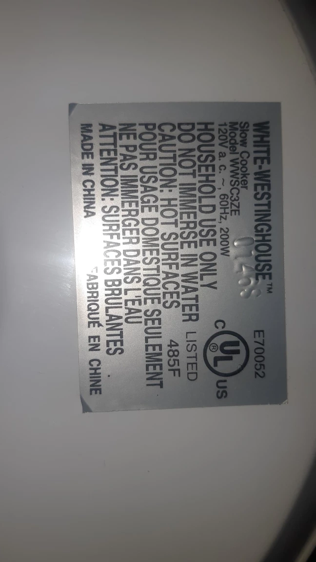 White-Westinghouse Slow Cooker Model WWSC3ZE