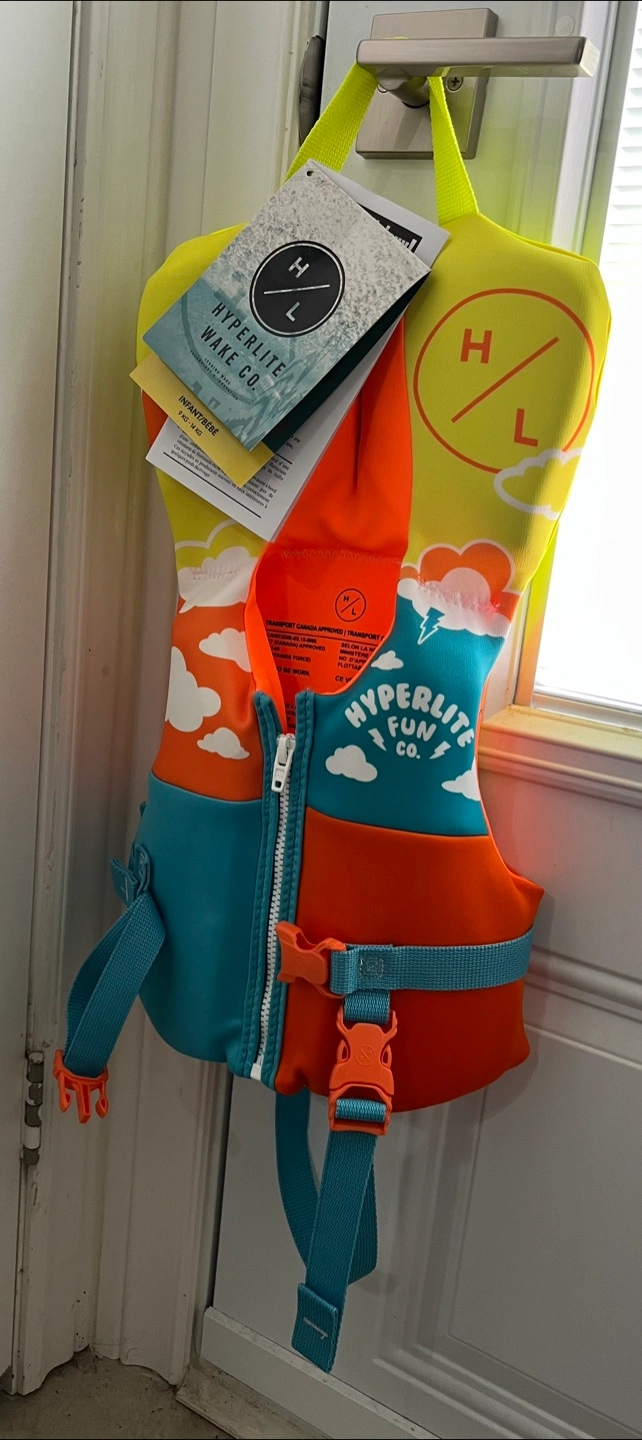 This Hyperlite Wake Co. infant life jacket is perfect for keeping your little one safe and secure while enjoying water activities
